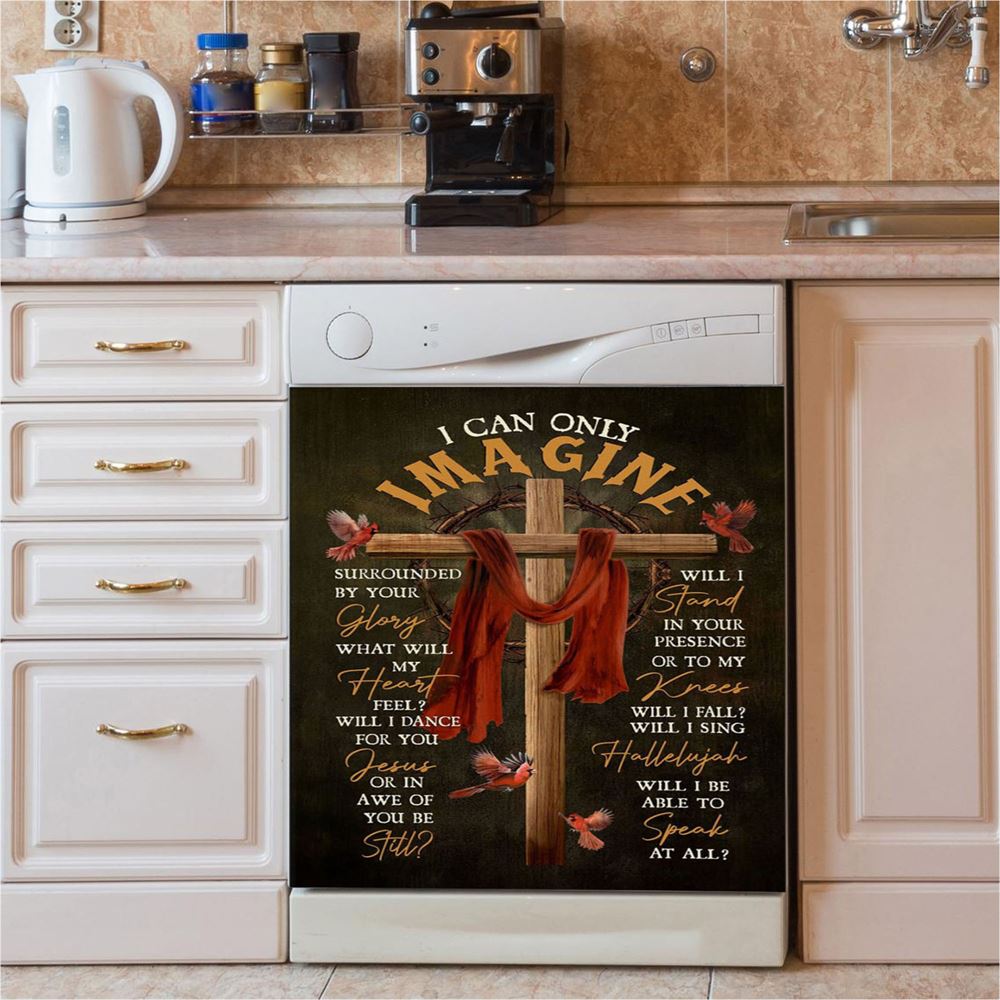 Cross With Red Cloth I Can Only Imagine Dishwasher Cover, Christian Dishwasher Magnet Cover, Religious Kitchen Decor