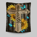Cross With Sunflower Faith Tapestry Art - Bible Verse Wall Art - Christian Inspirational Wall Decor