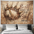 Crown Of Thorn Wooden Cross Be Still And Know That I Am God Tapestry Wall Art - Bible Verse Tapestry - Religious Tapestry Wall Hanging