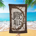 Crown Of Thorn Wooden Cross Beach Towel- Jesus Paid It All Beach Towel - Christian Beach Towel - Bible Verse Beach Towel