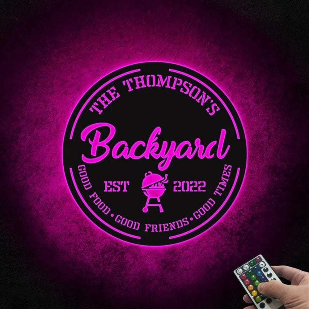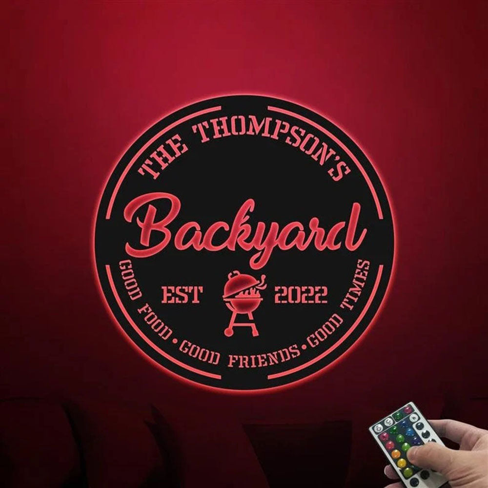 Custom Bakcyard Metal Sign, Led Light Backyard Bar And Grill Sign, Anniversary Gift, Home Decor Sign, Outdoor Sign, Wall Hanging Art