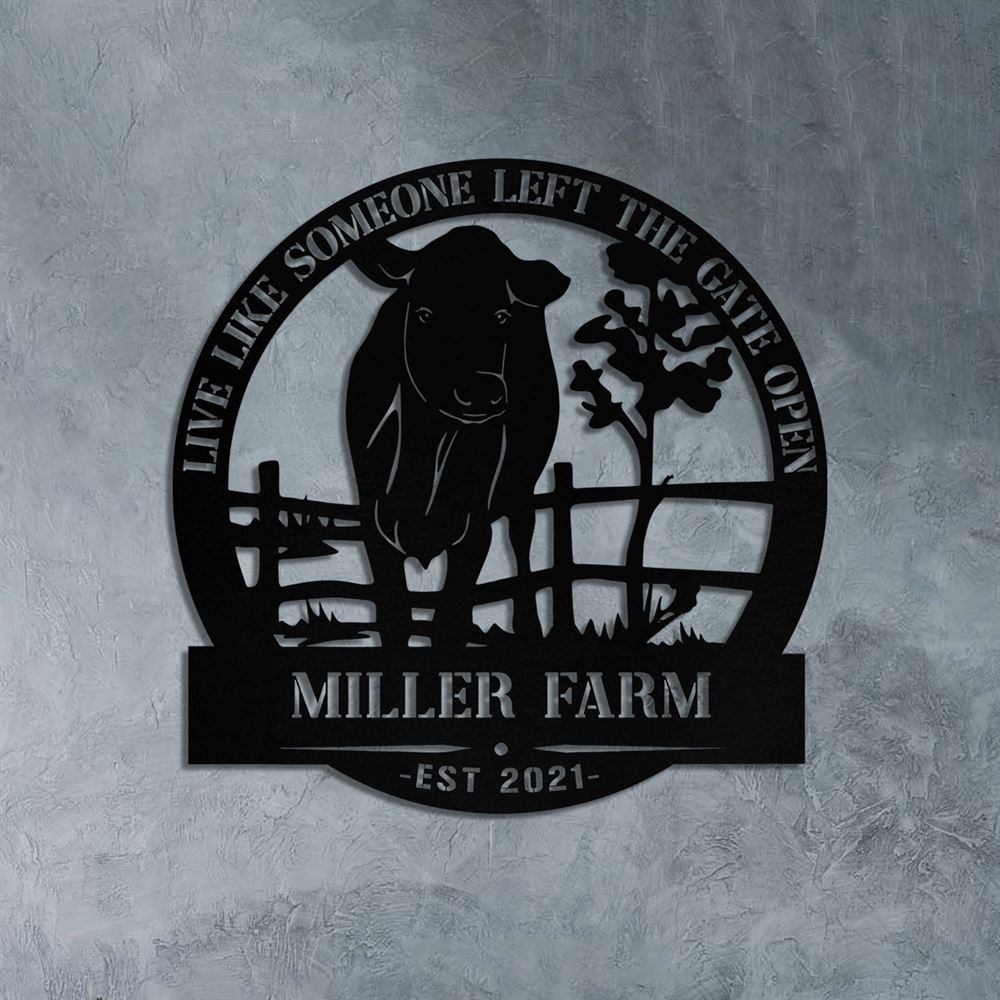 Custom Metal Farm Sign, Cow Cattle Outdoor Farmhouse Entry Road Front Gate Wall Decor Gift, Gift Ideas For Farm Woman, Outdoor Metal Sign Frames