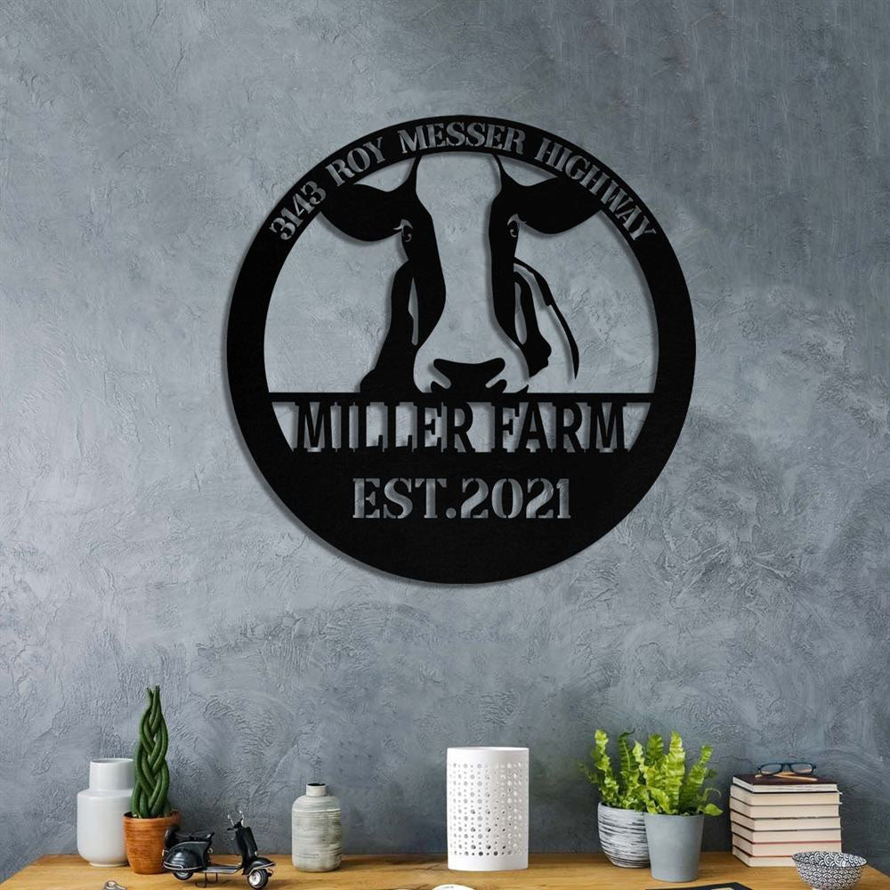 Custom Metal Farm Sign, Cow Cattle Outdoor Farmhouse Front Gate Entry Road Wall Decor Art, Gift Ideas For Farm Woman, Outdoor Metal Sign Frames