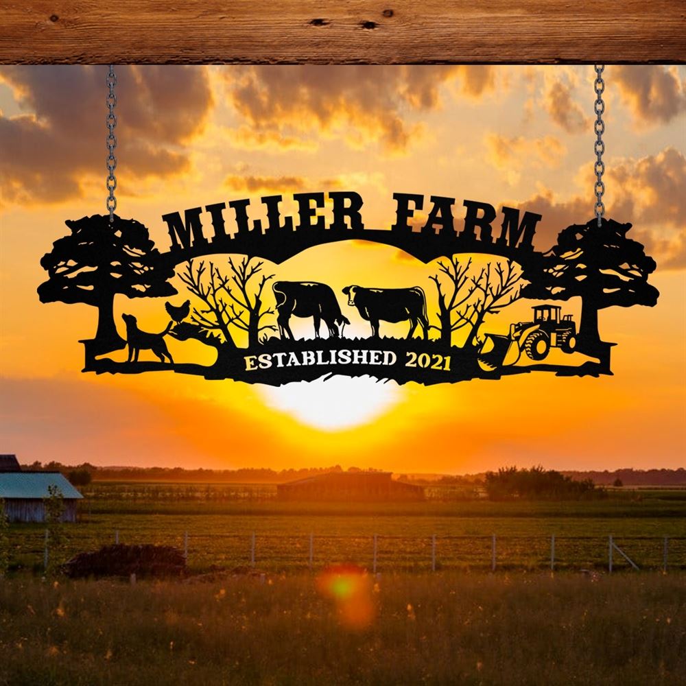 Custom Metal Farm Sign, Cow Dog Chicken Tractor Outdoor Farmhouse Front Gate Wall Decor Art, Gift Ideas For Farm Woman, Outdoor Metal Sign Frames