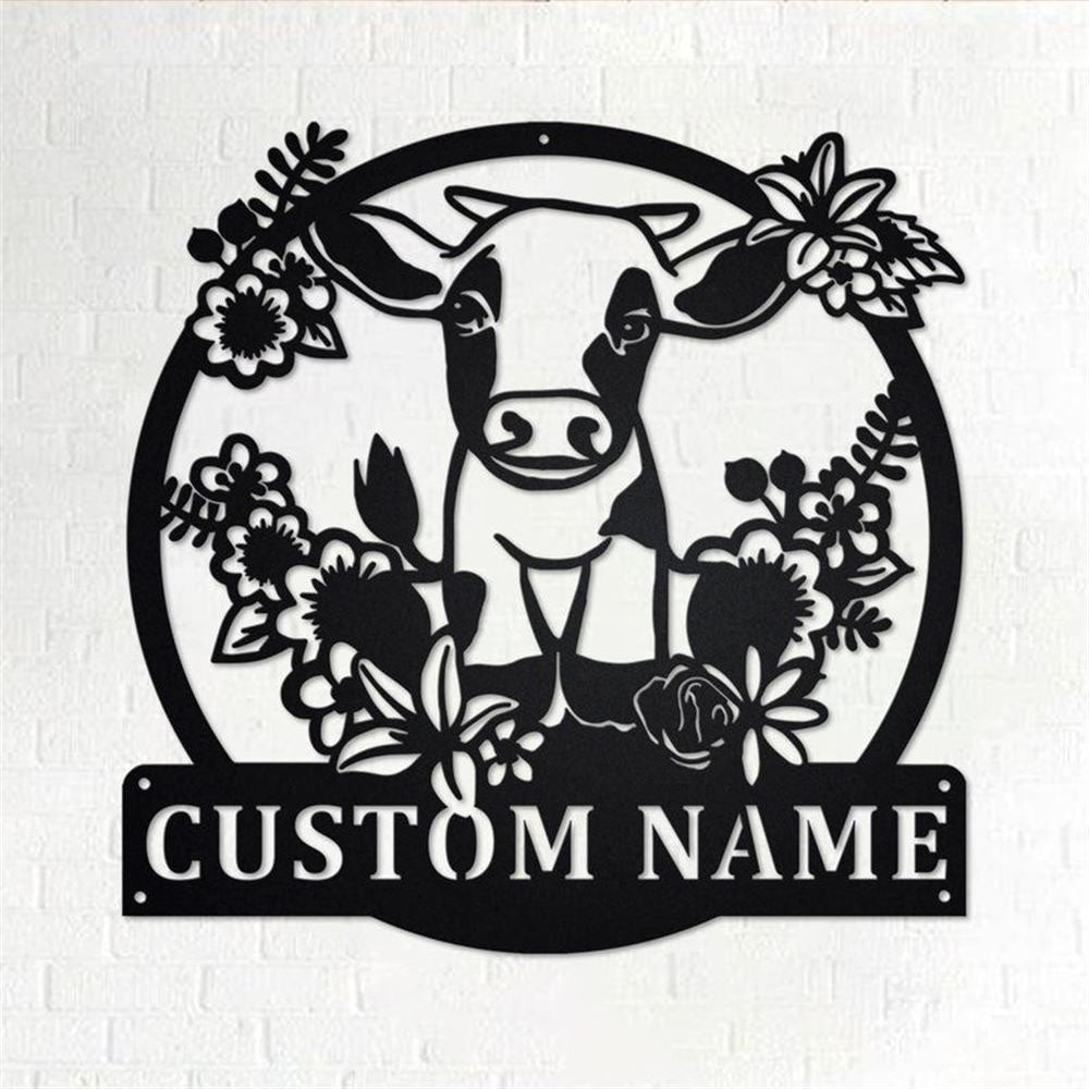 Custom Metal Farm Sign, Floral Cow Farm Metal Wall Art, Gift Ideas For Farm Woman, Large Metal Outdoor Signs, Outdoor Metal Sign Frames