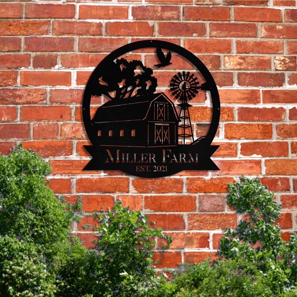 Custom Metal Farm Sign, Windmill Outdoor Farmhouse Front Gate Entry Road Wall Decor Art, Gift Ideas For Farm Woman, Outdoor Metal Sign Frames