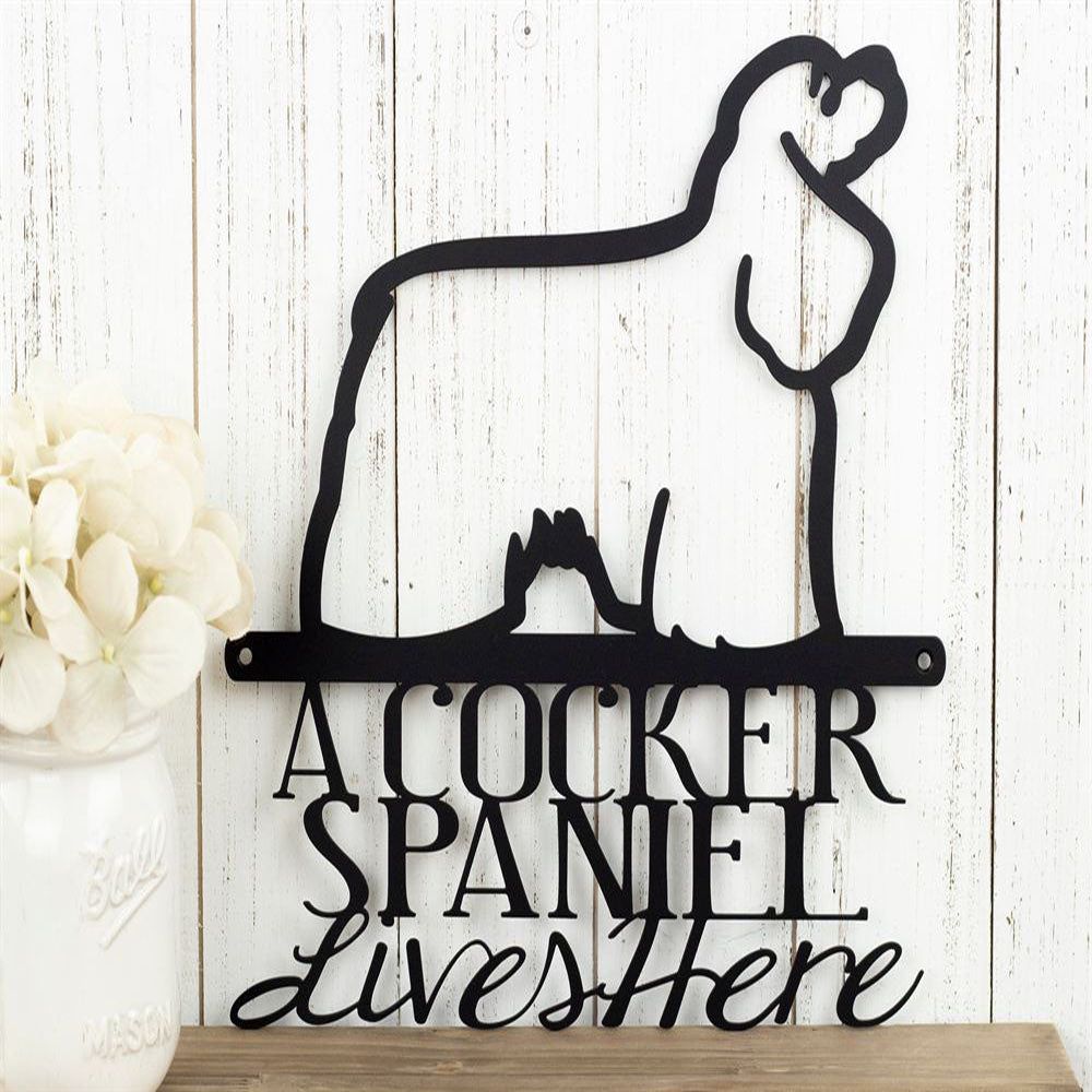 Custom Metal Sign, Cocker Spaniel Lives Here Metal Sign, Anniversary Gift, Dog House Sign, Dog Wall Art, Outdoor Sign, Home Decor Sign