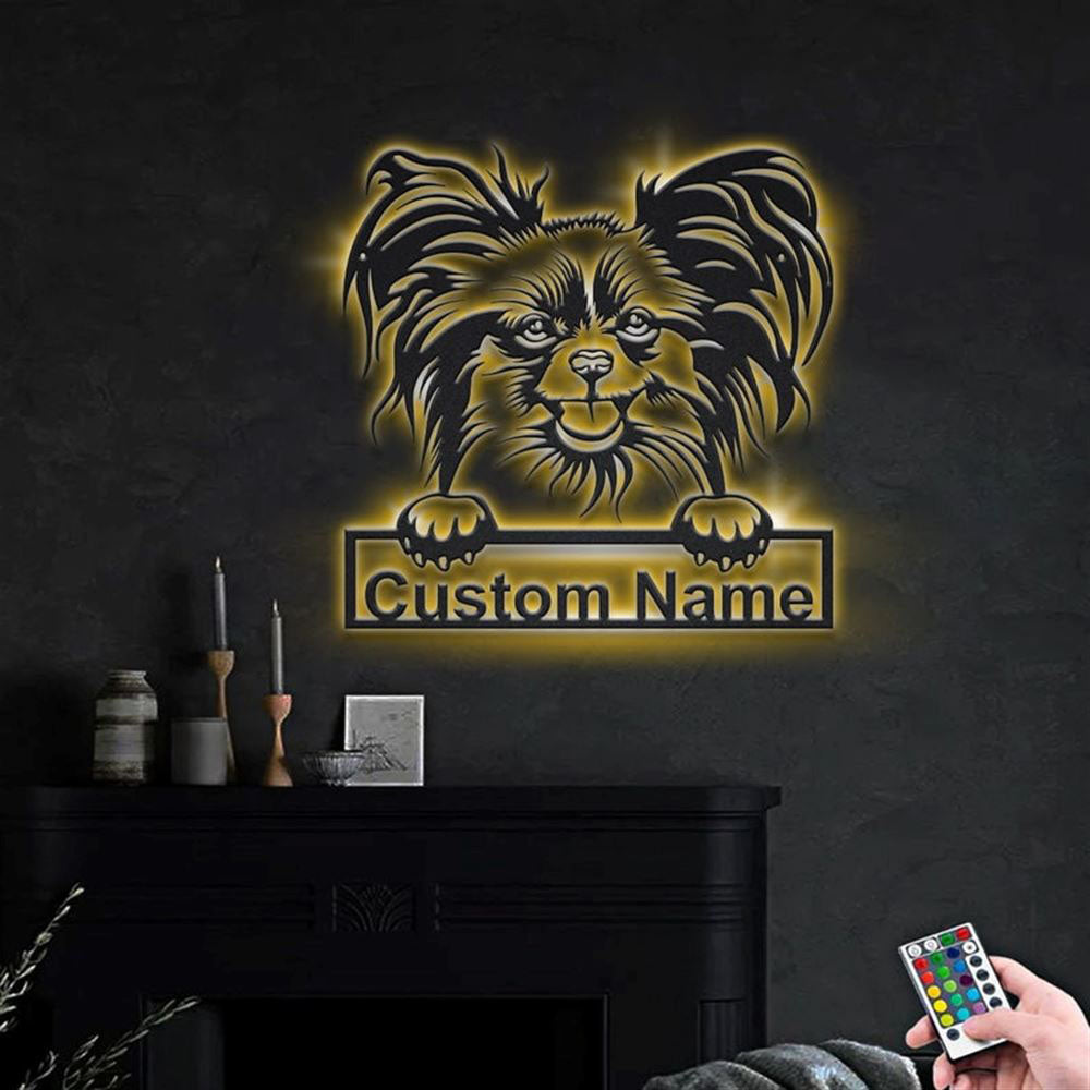Custom Papillon Dog Metal Sign, Led Lights Papillon Dog Sign, Dog Lover Gift, Dog Wall Sign, Home Decor Sign