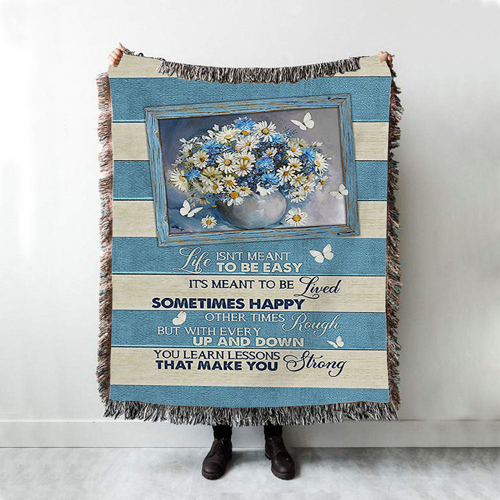 Daisy Butterfly Life Isn't Meant To Be Easy Woven Blanket Art - Bible Verse Throw Blanket - Christian Inspirational Boho Blanket