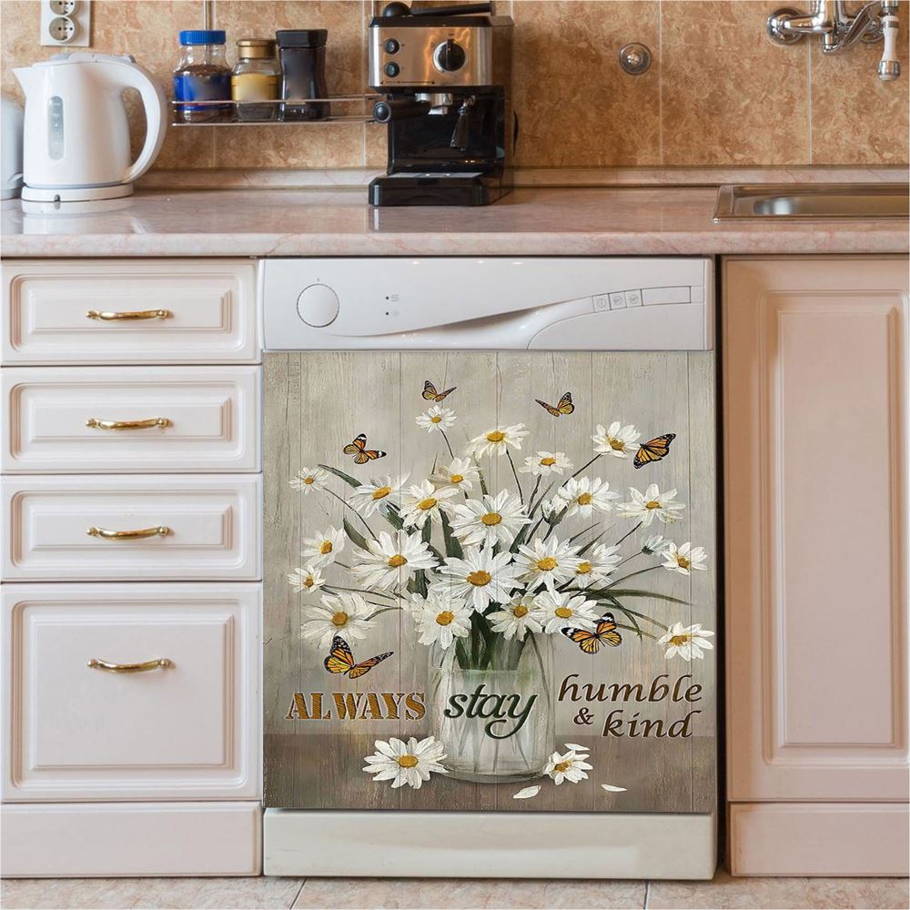 Daisy Vase Always Stay Humble And Kind Dishwasher Cover, Christian Dishwasher Magnet Cover, Religious Home Decor