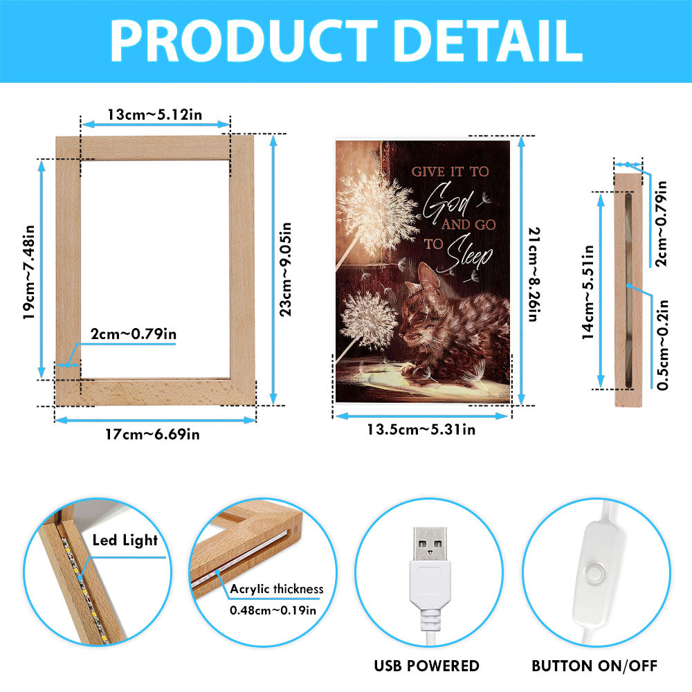 Dandelion Cat Give It To God And Go To Sleep Frame Lamp Prints - Bible Verse Art - Christian Night Light