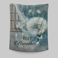 Dandelion Crystal Butterfly Bible Verse - Just Breathe Tapestry Wall Art - Christian Tapestries Prints - Bible Verse Tapestry Art