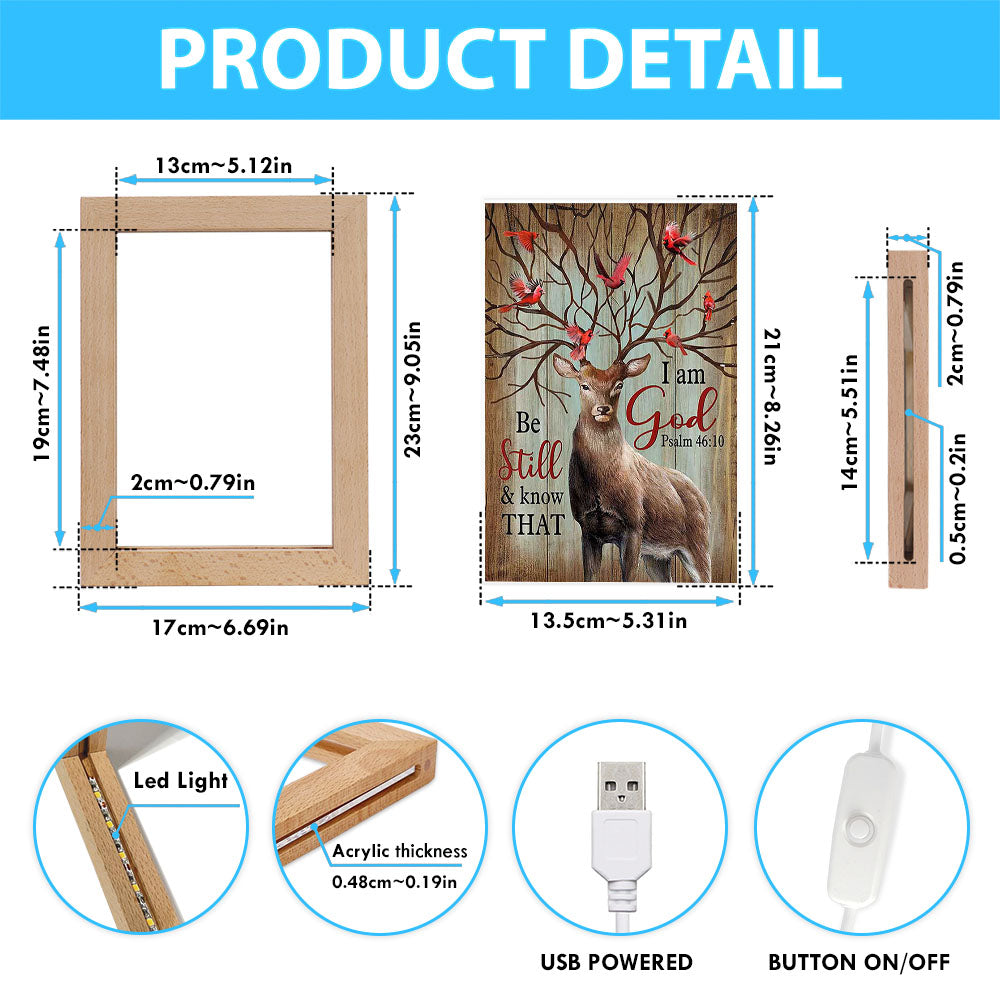 Deer Cardinal Be Still And Know That I Am God Frame Lamp Art - Bible Verse Art - Christian Inspirational Decor