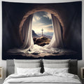 Empty Tomb Crucifixion Sunrise With White Robe Tapestry Pictures - Faith Art - Christian Tapestry Wall Art Decor