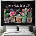 Every Day Is A Gift Flower Rustic Cactus Tulip Flower Butterfly Large Tapestry - Christian Wall Art - Bible Verse Tapestry Art