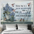 Every Day Is A New Beginning Blue Flower Hummingbird Tapestry Prints - Religious Tapestry Art - Christian Home Decor
