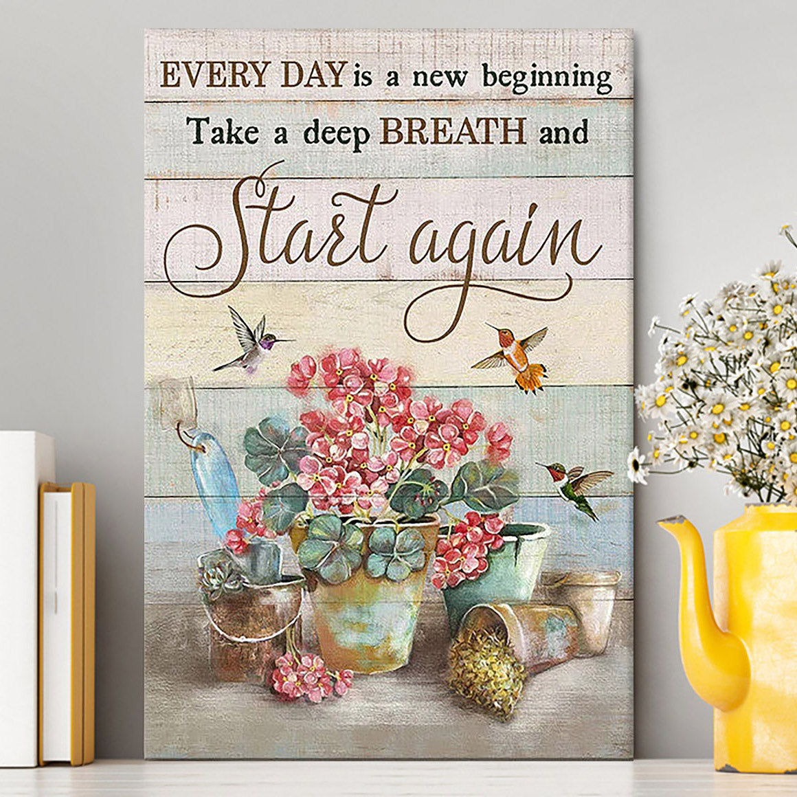 Every Day Is A New Beginning Red Geranium Hummingbird Canvas Art - Christian Art - Bible Verse Wall Art - Religious Home Decor