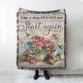 Every Day Is A New Beginning Red Geranium Hummingbird Woven Blanket Art - Christian Art - Bible Verse Throw Blanket - Religious Home Decor