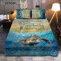 Everyday Is A New Beginning Sea Turtle Lighthouse Blue Ocean Quilt Bedding Set Bedroom - Christian Quilt Bedding Set Prints - Bible Verse Quilt Bedding Set Art