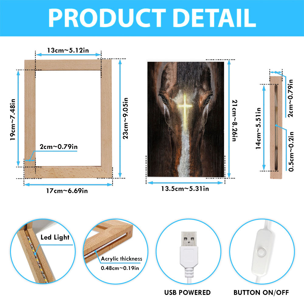 Face Of Horse Beautiful Cross Frame Lamp Art - Bible Verse Art - Christian Inspirational Decor
