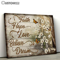 Faith Hope Love Believe Dream Butterflies Flowers Large Canvas Art - Christian Wall Art Home Decor - Religious Canvas Prints