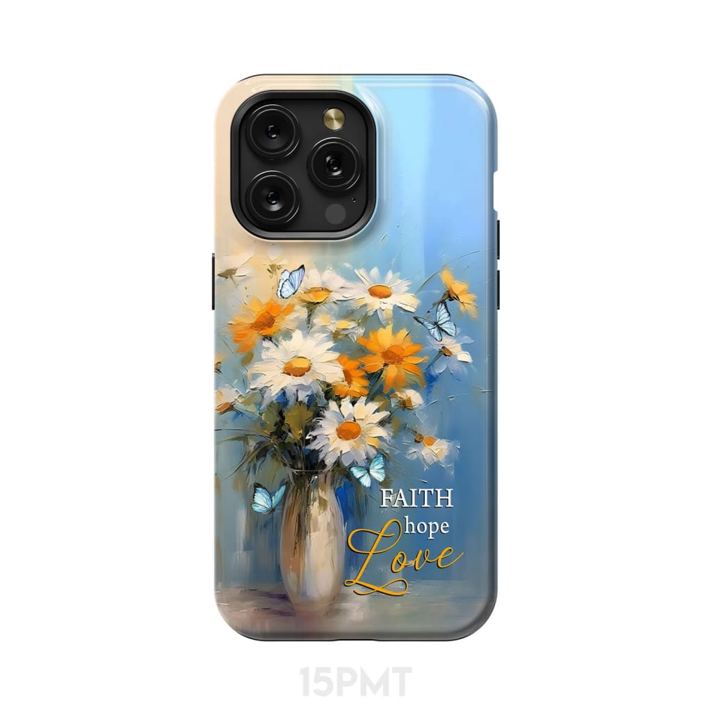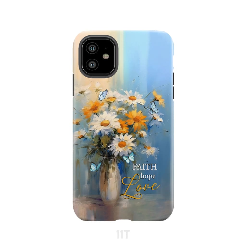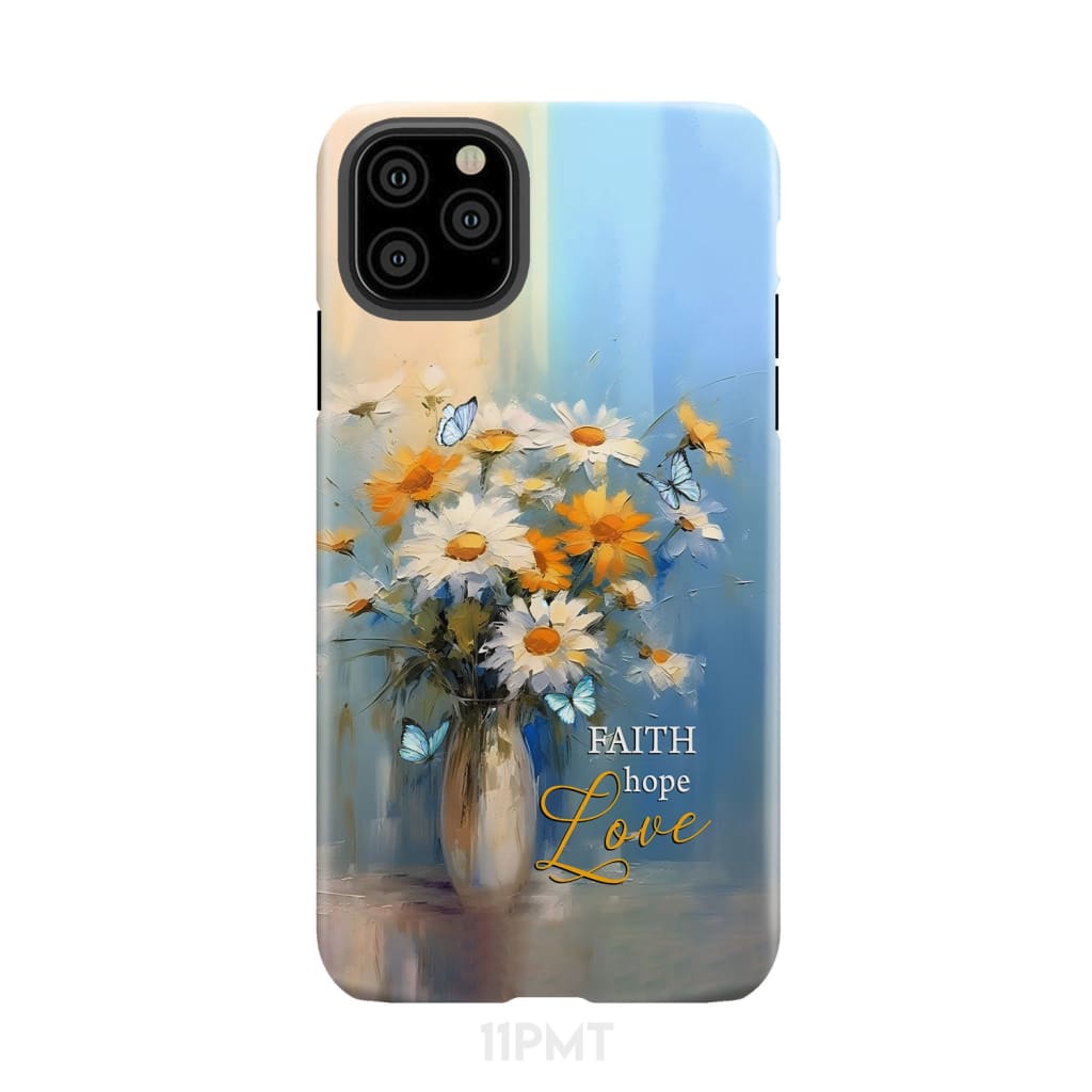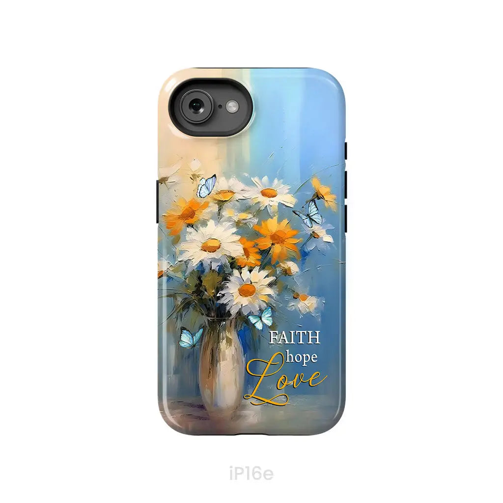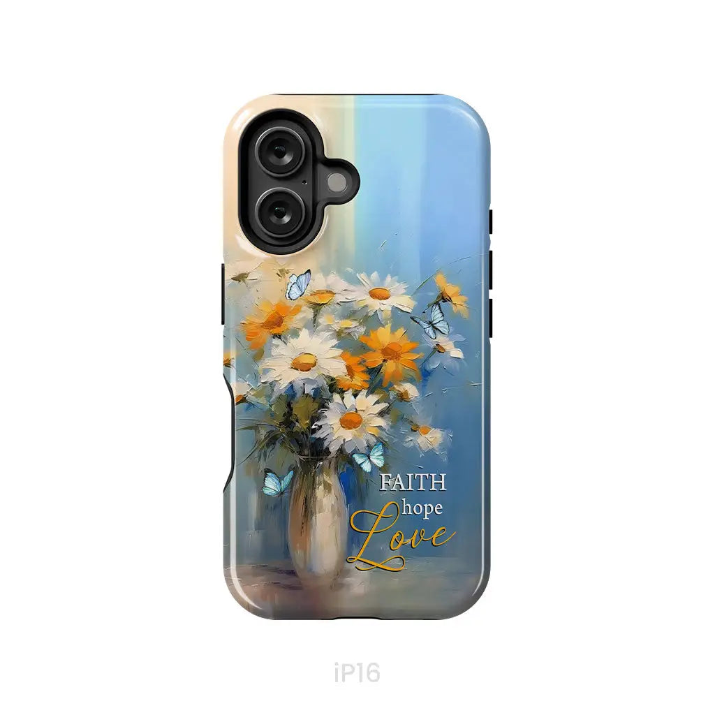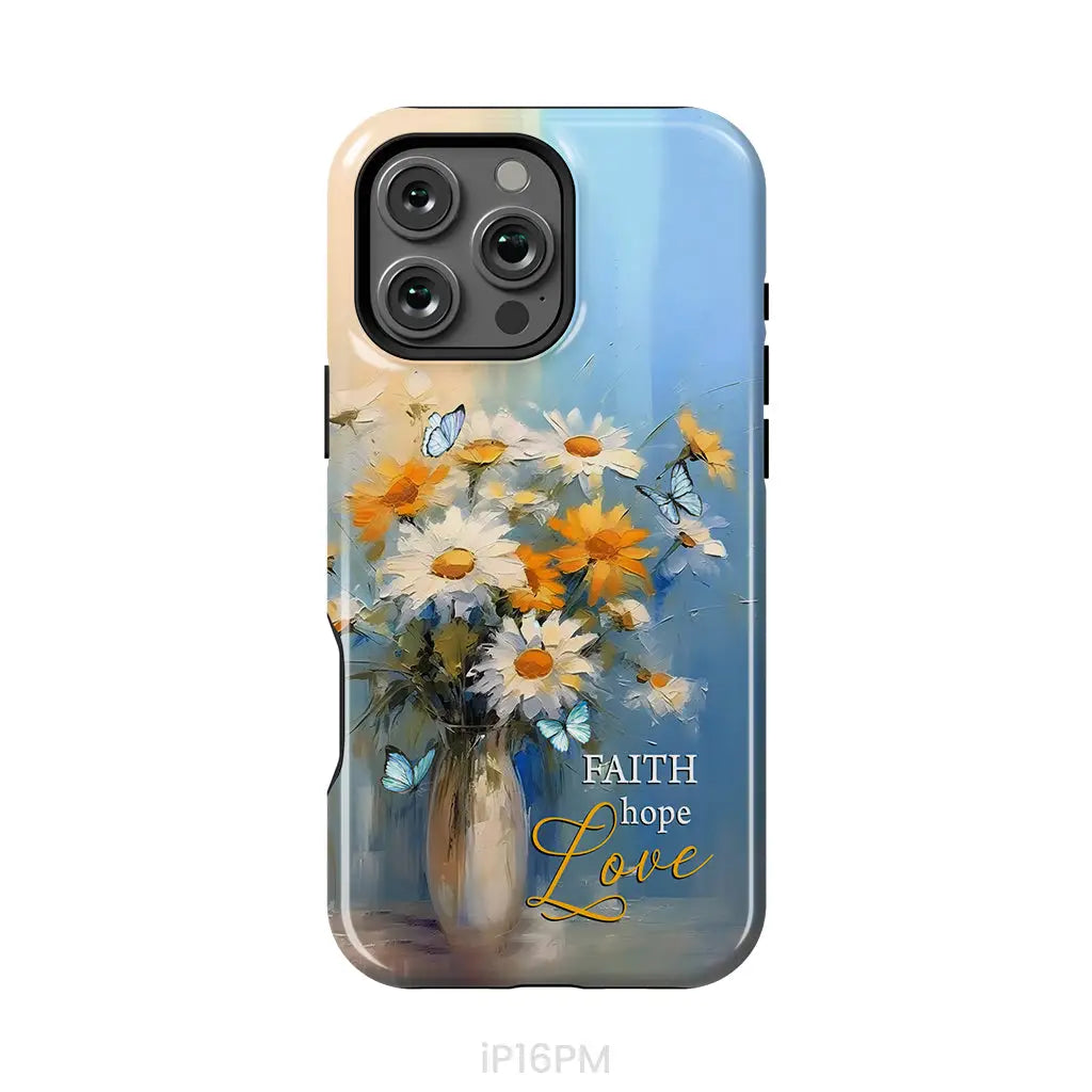 Faith Hope Love, Butterflies, Daisies in a Vase, Phone Case