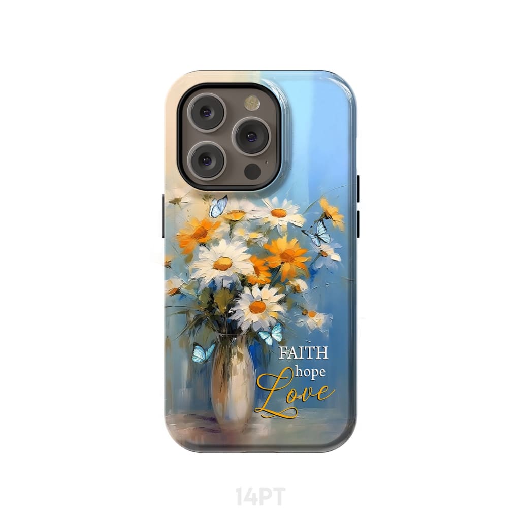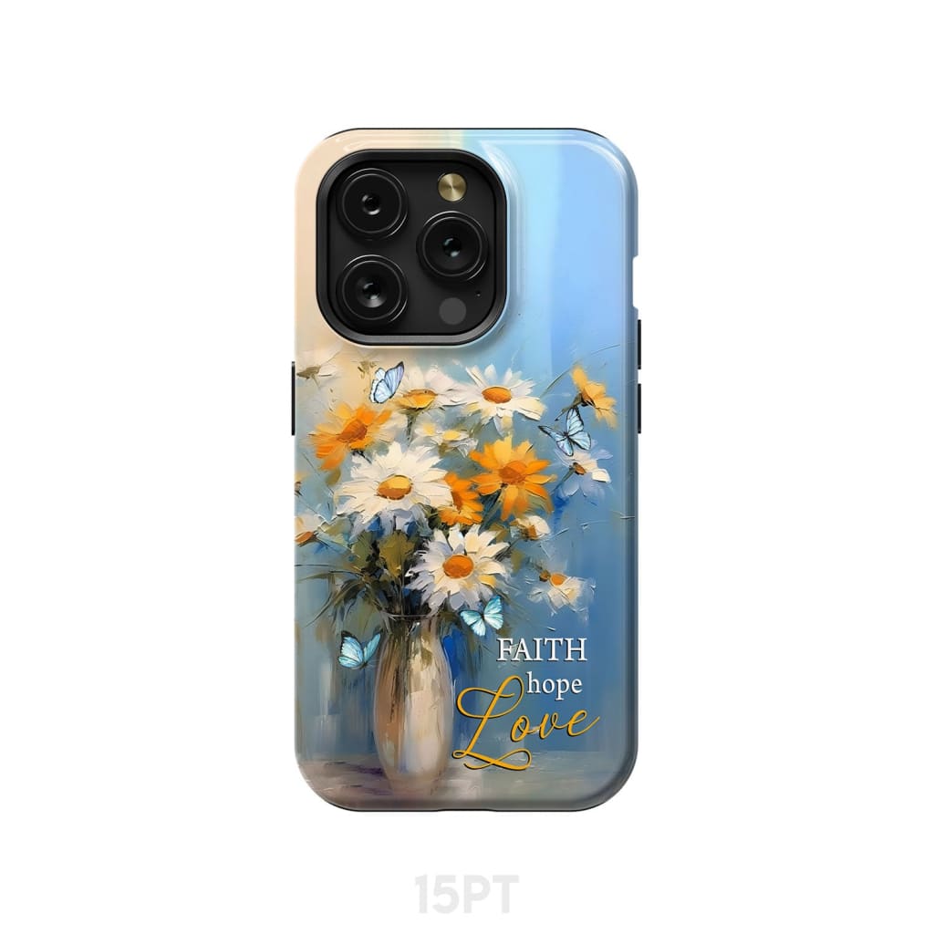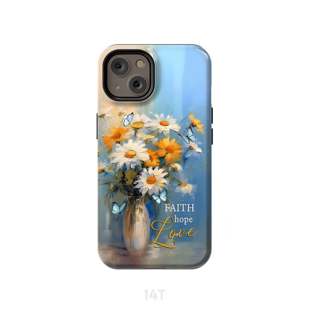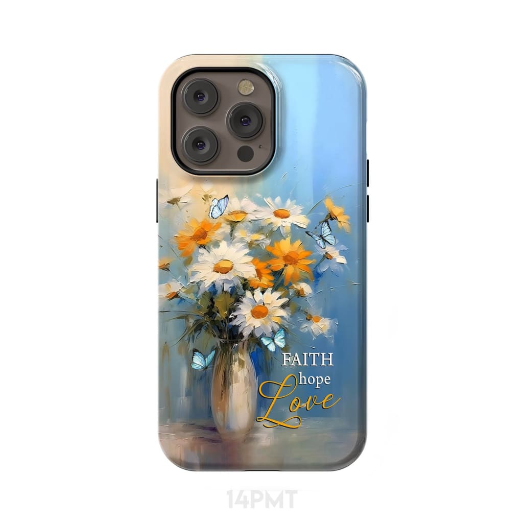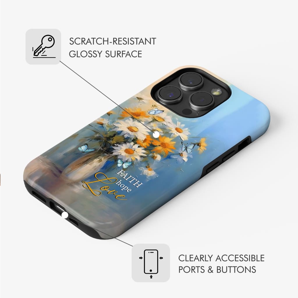 Faith Hope Love, Butterflies, Daisies in a Vase, Phone Case
