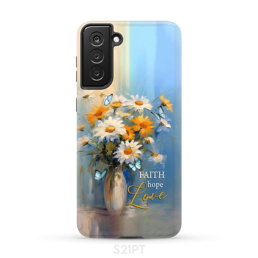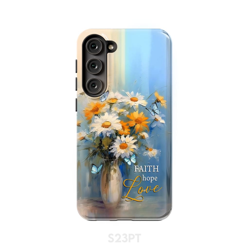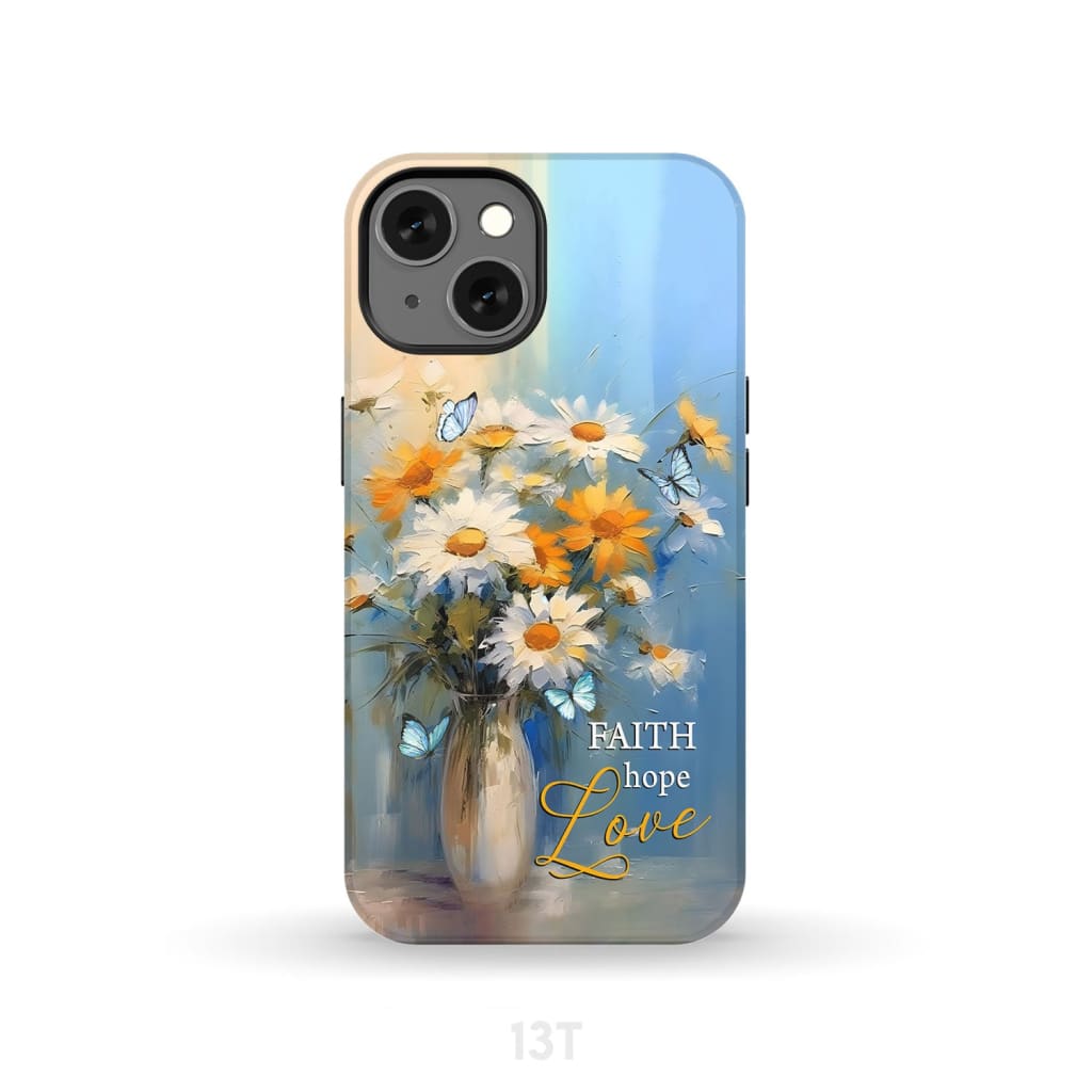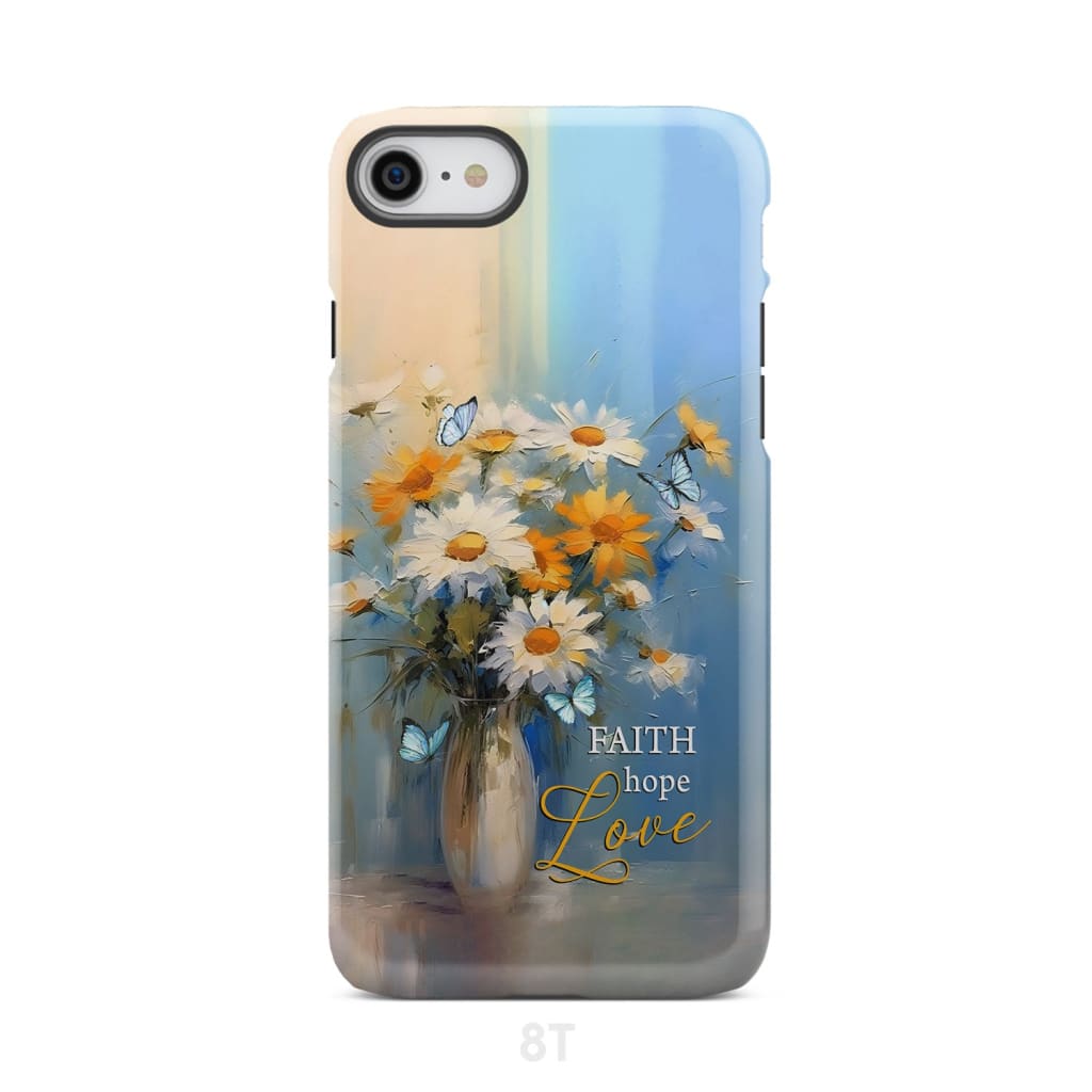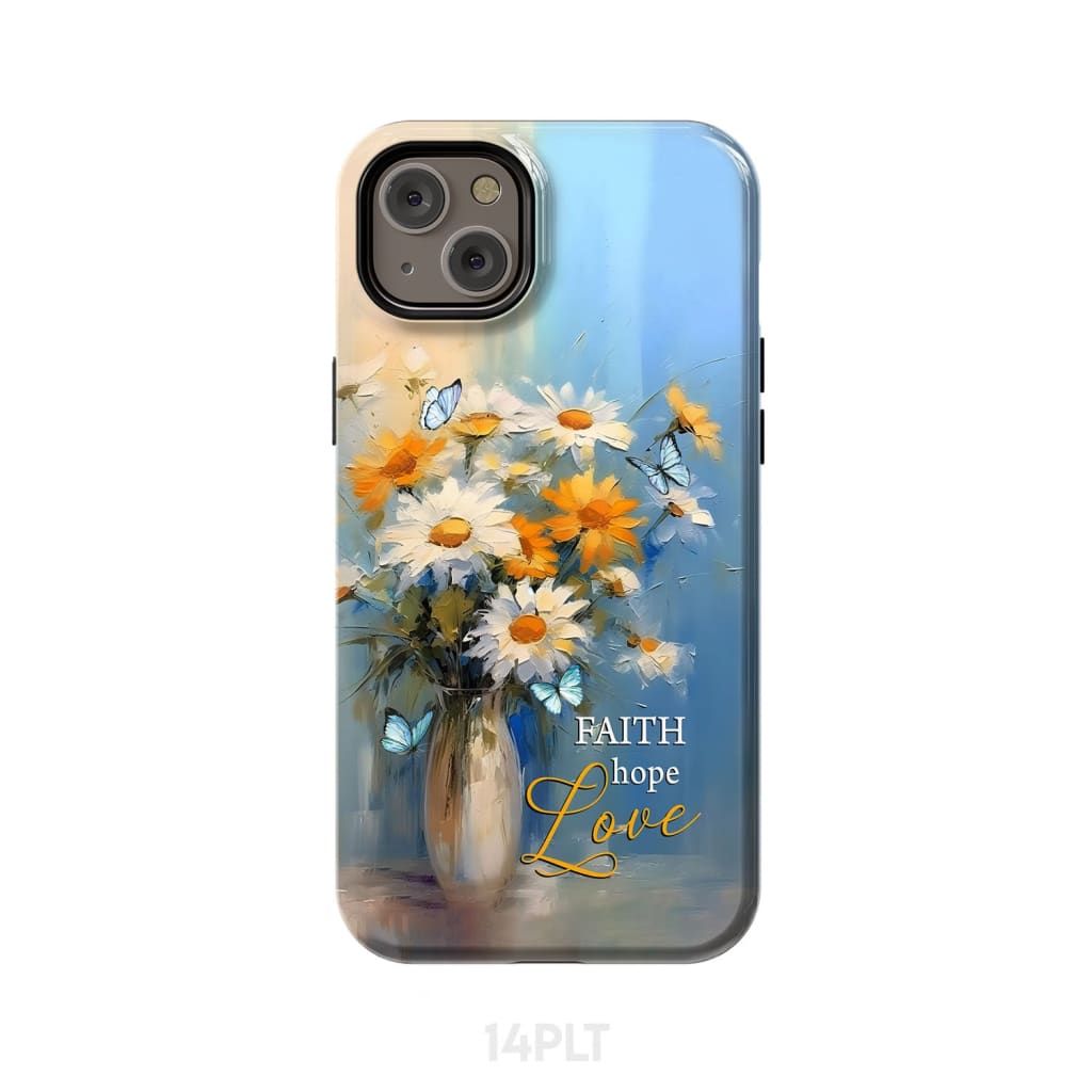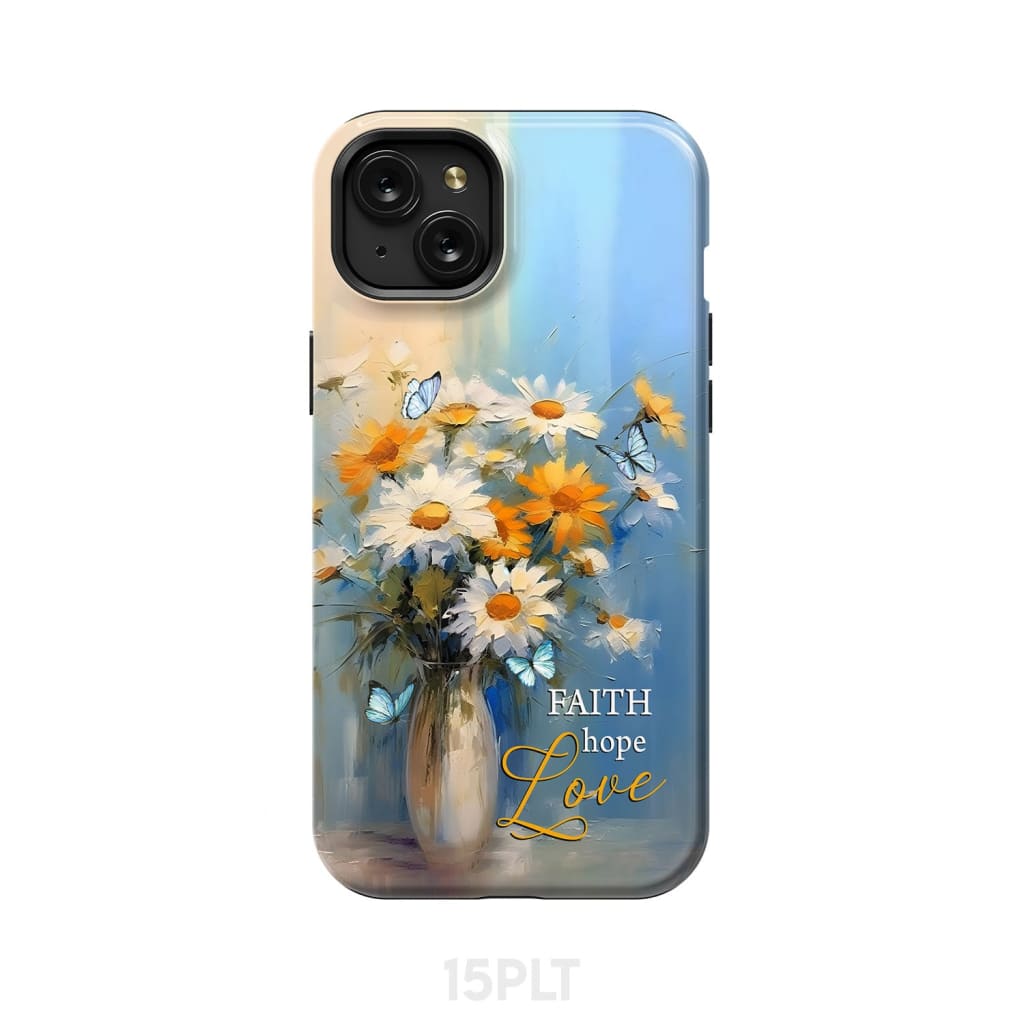 Faith Hope Love, Butterflies, Daisies in a Vase, Phone Case