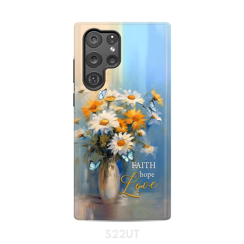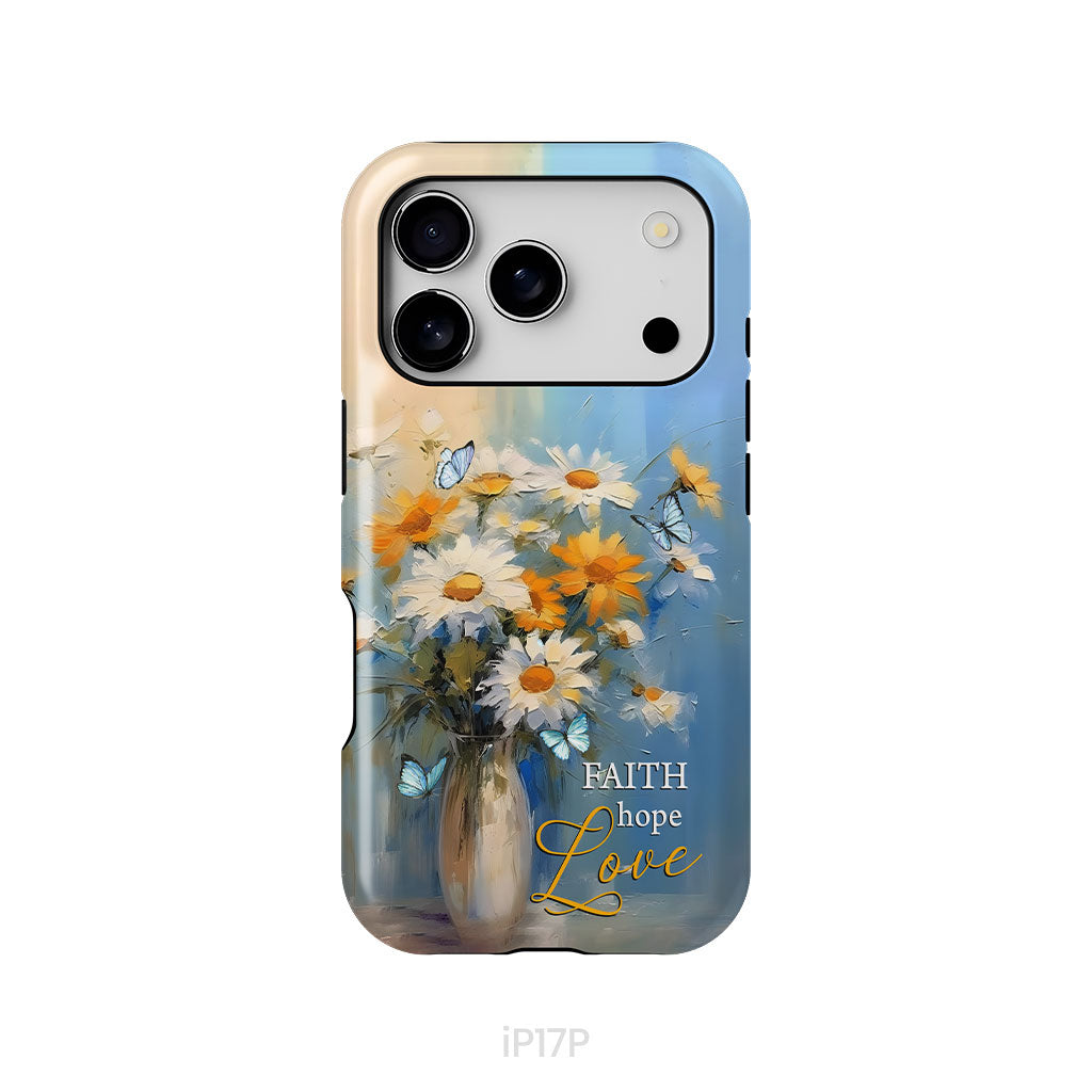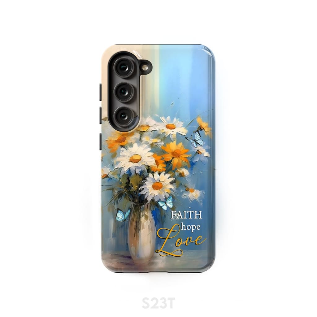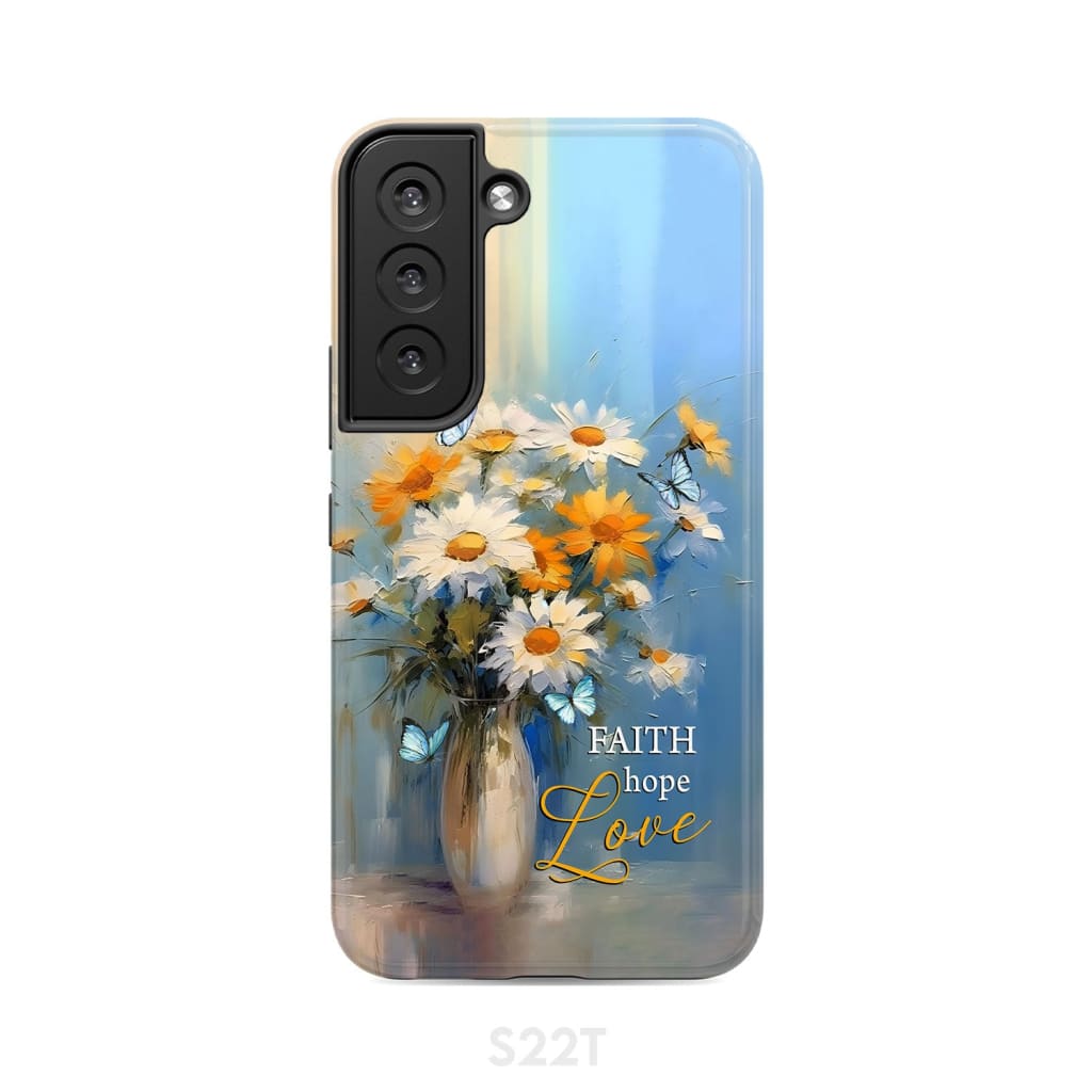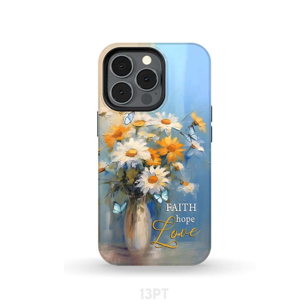 Faith Hope Love, Butterflies, Daisies in a Vase, Phone Case