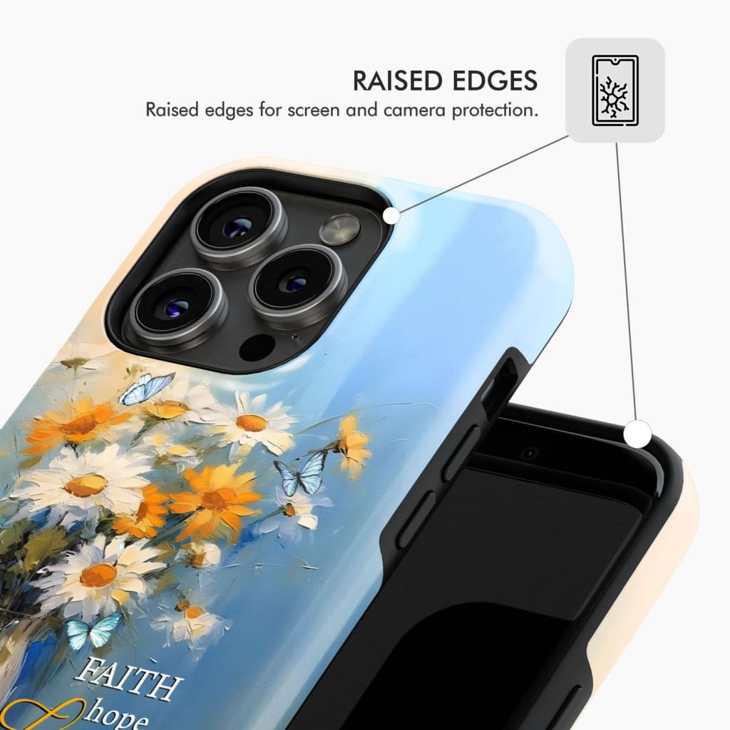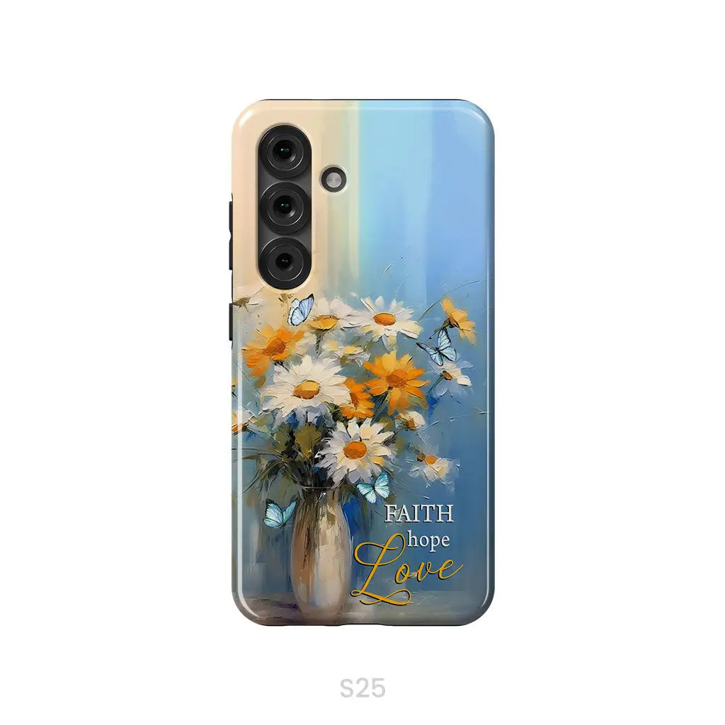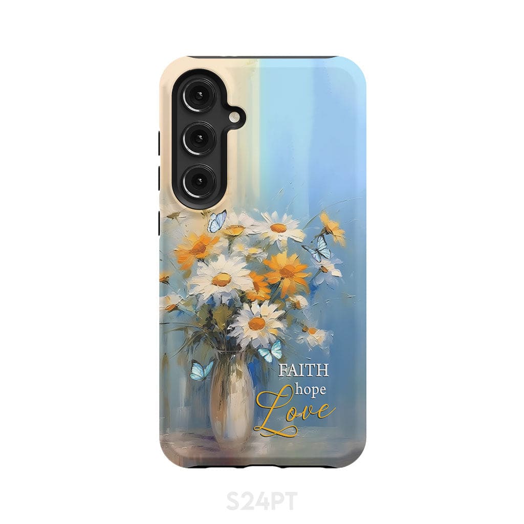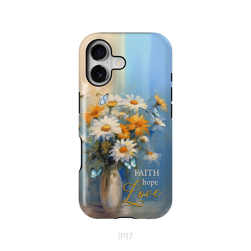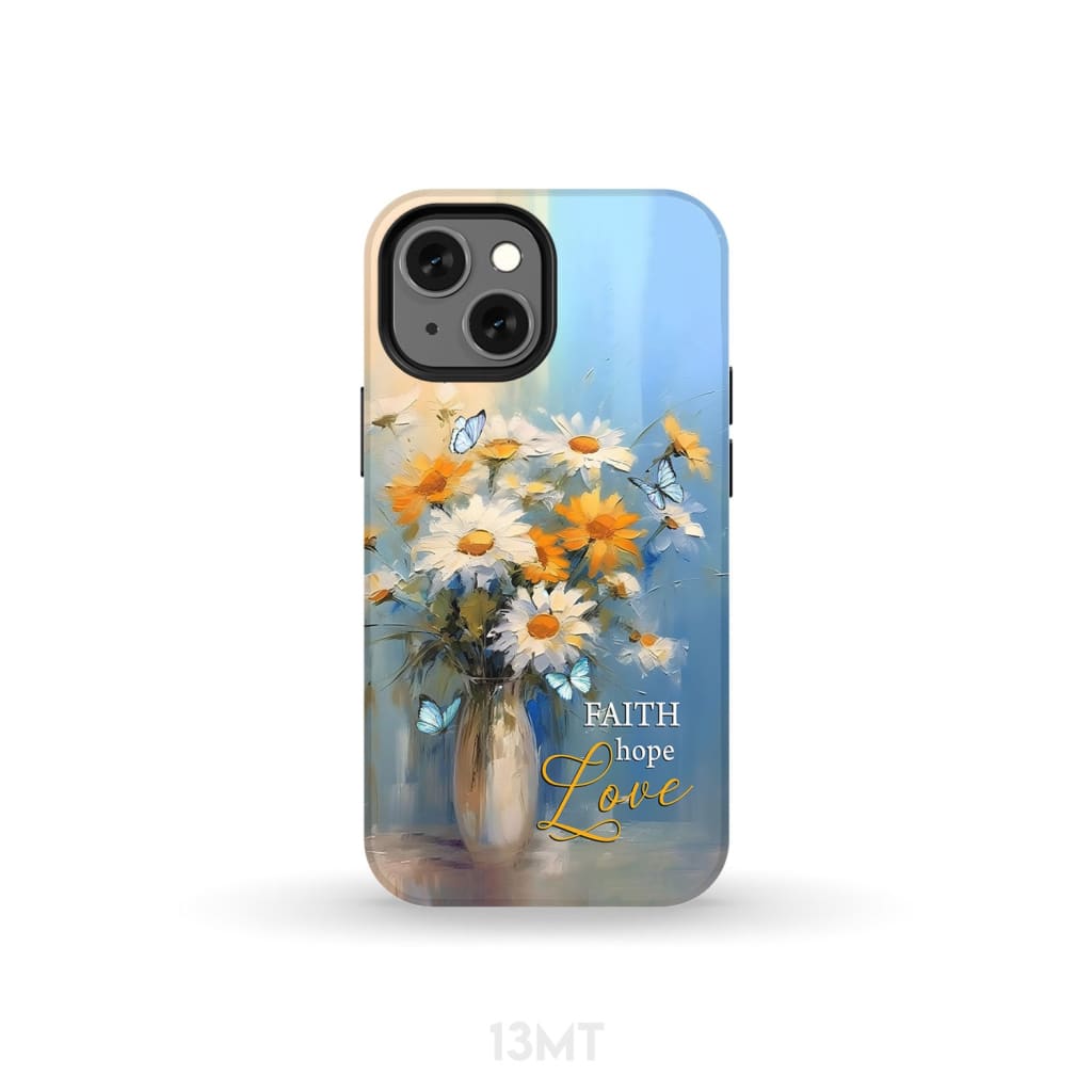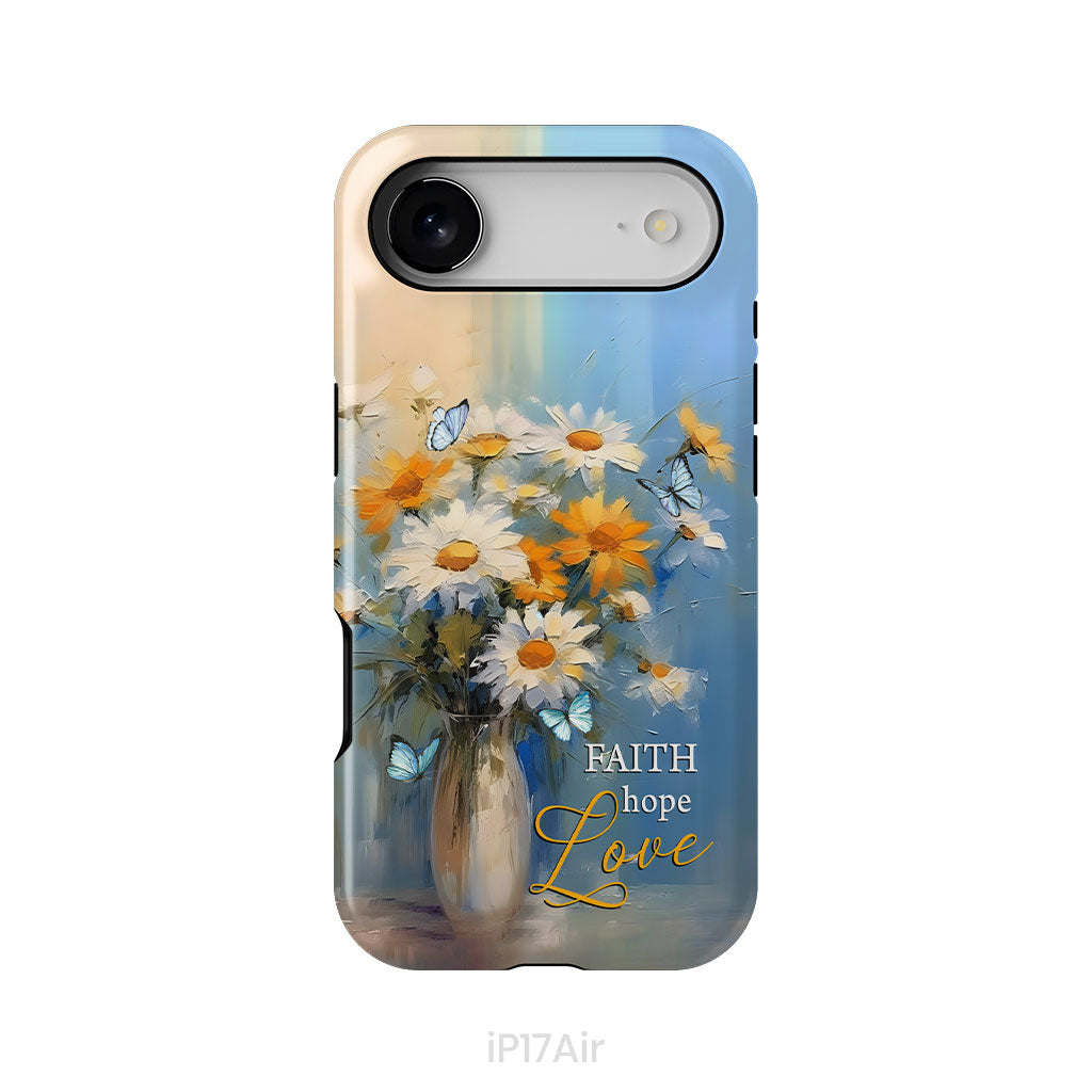 Faith Hope Love, Butterflies, Daisies in a Vase, Phone Case