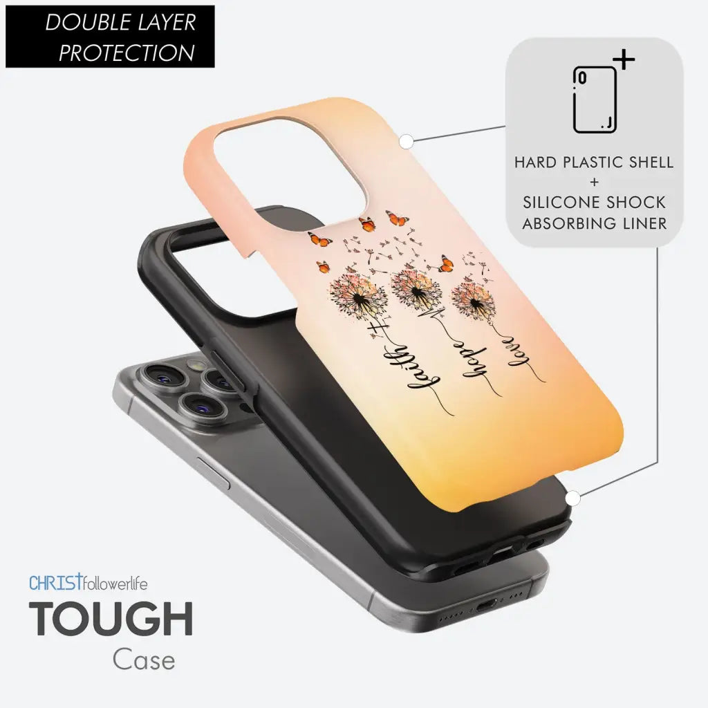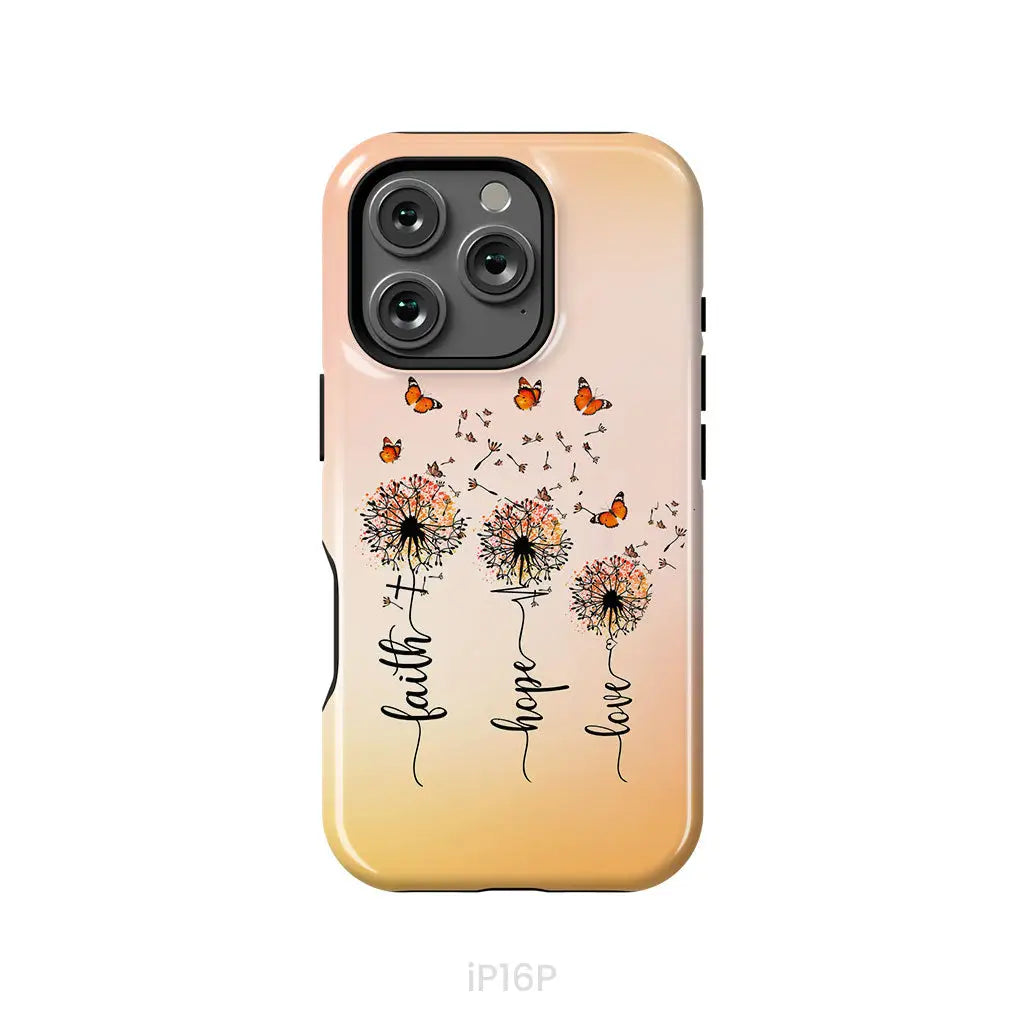 Faith Hope Love, Dandelion Butterfly, Phone Case