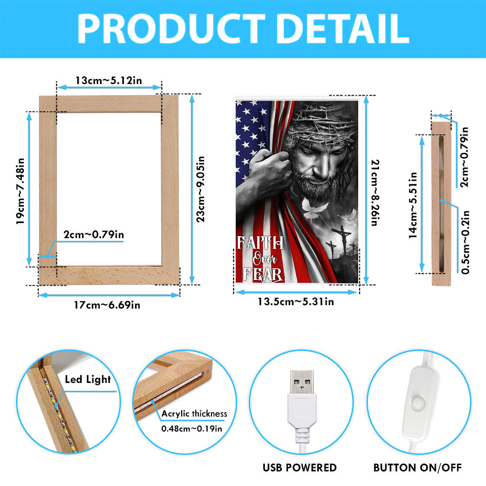 Faith Over Fear God Jesus Frame Lamp Art - Christian Art Decor - Religious Gifts Night Light