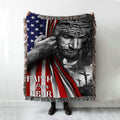 Faith Over Fear God Jesus Woven Throw Blanket - Christian Throw Blanket Decor - Religious Woven Blanket Prints
