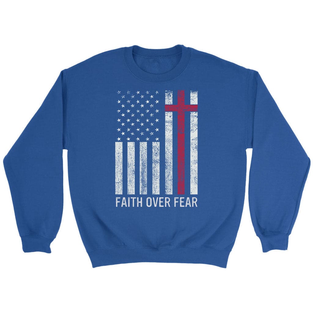 Faith Over Fear, USA Flag, Christian Patriotic Sweatshirt