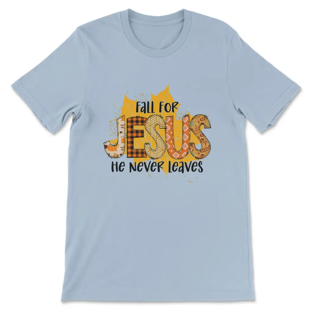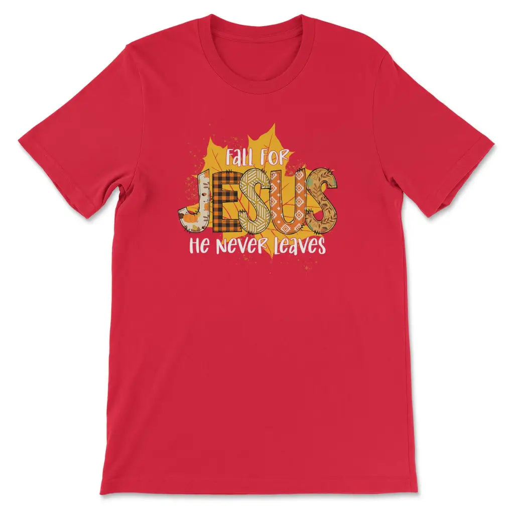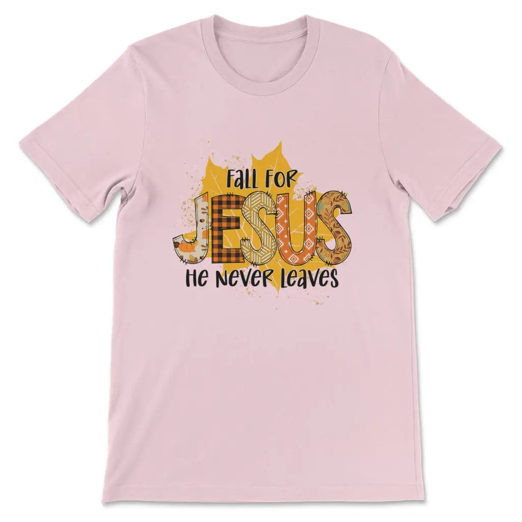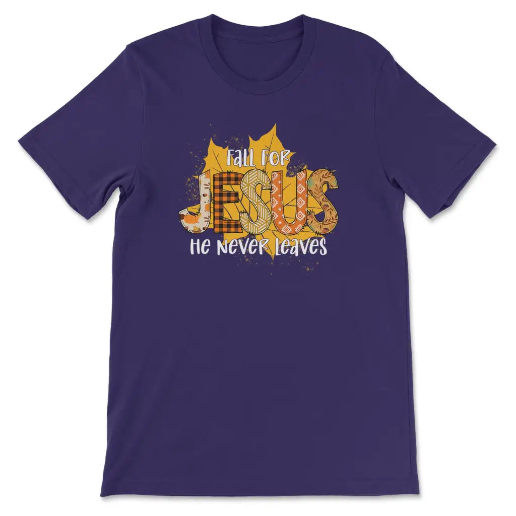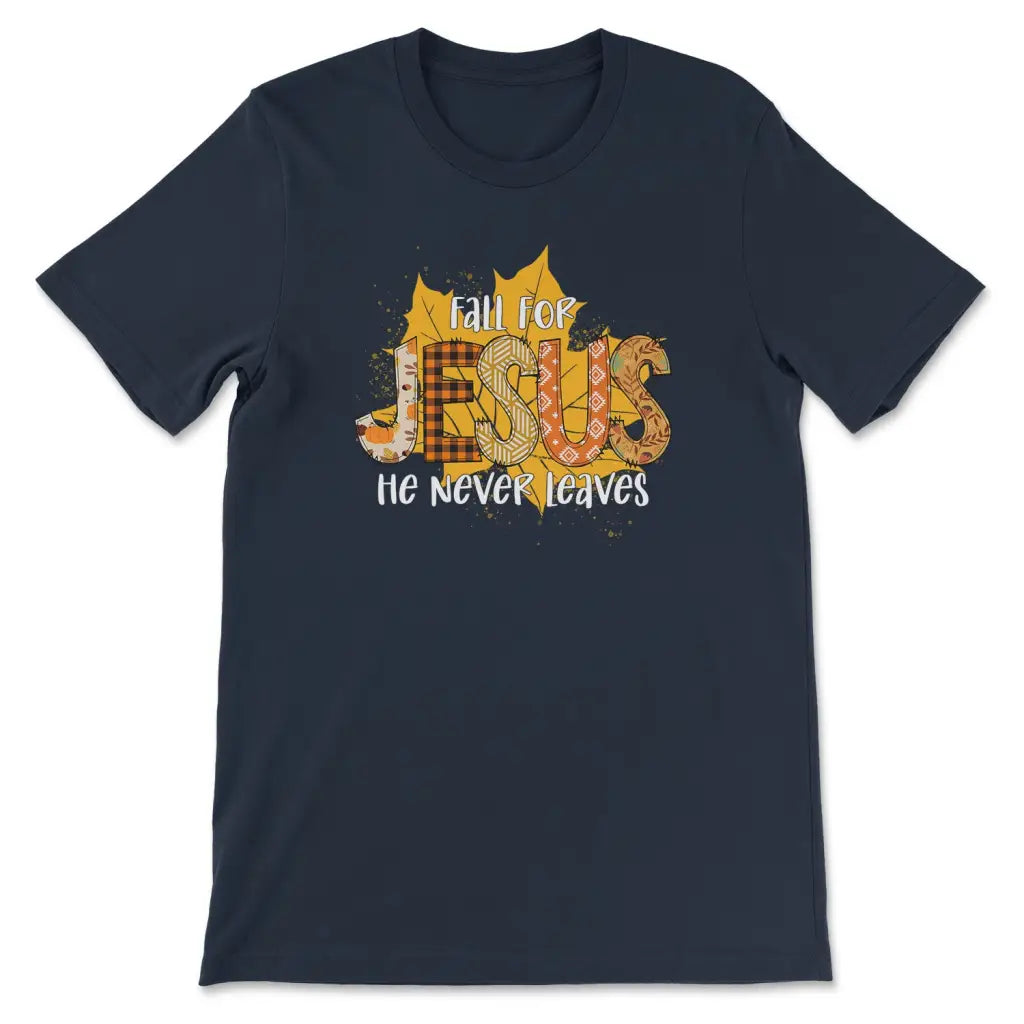 Fall for Jesus He Never Leaves Autumn Leaf T-shirt