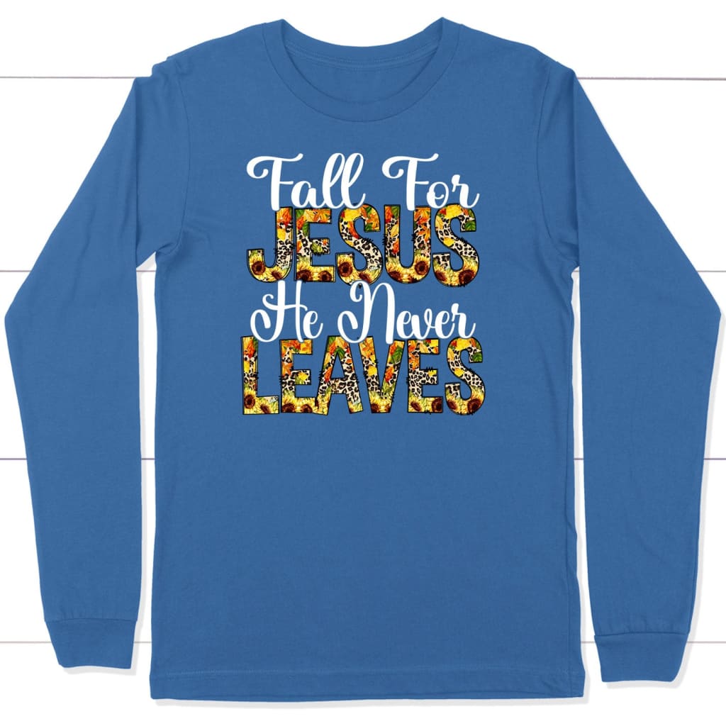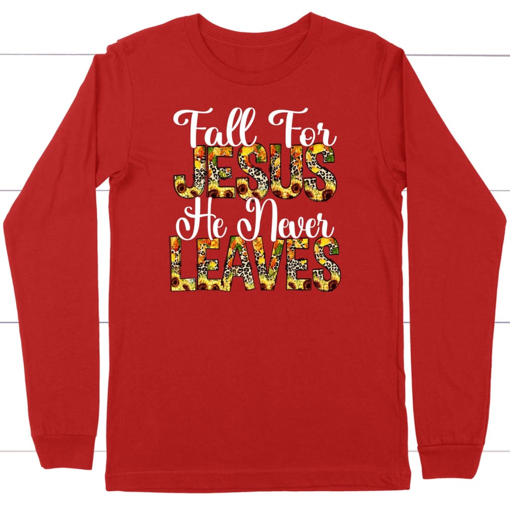 Fall for Jesus He Never Leaves Autumn Long Sleeve Shirt