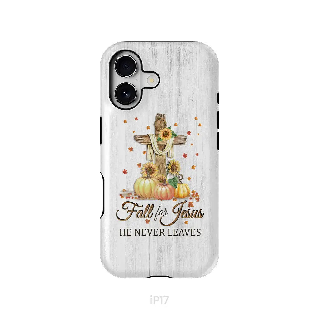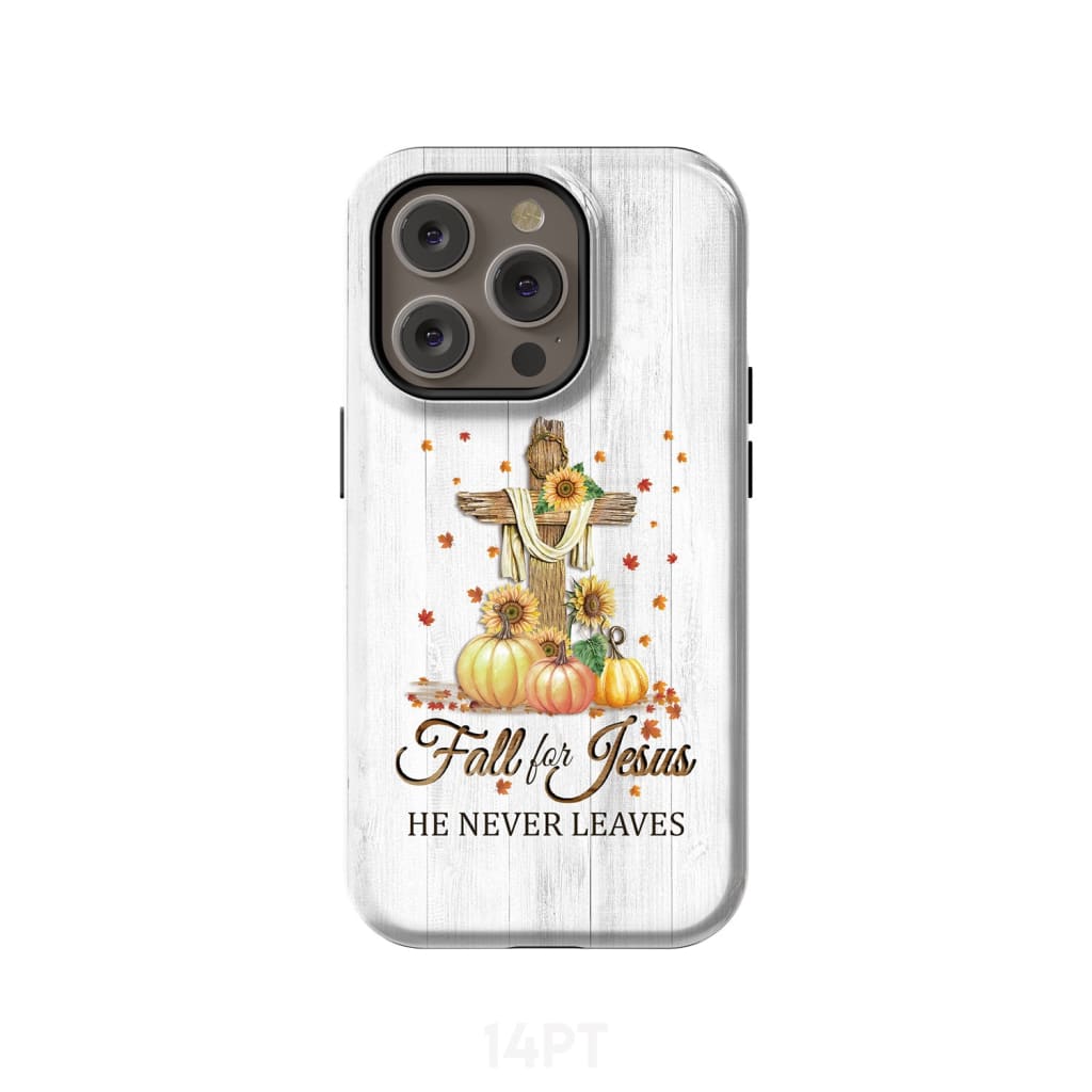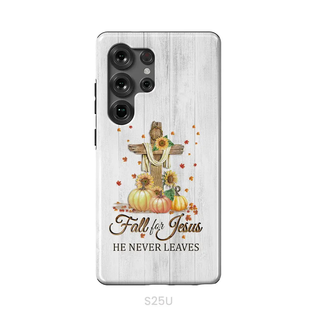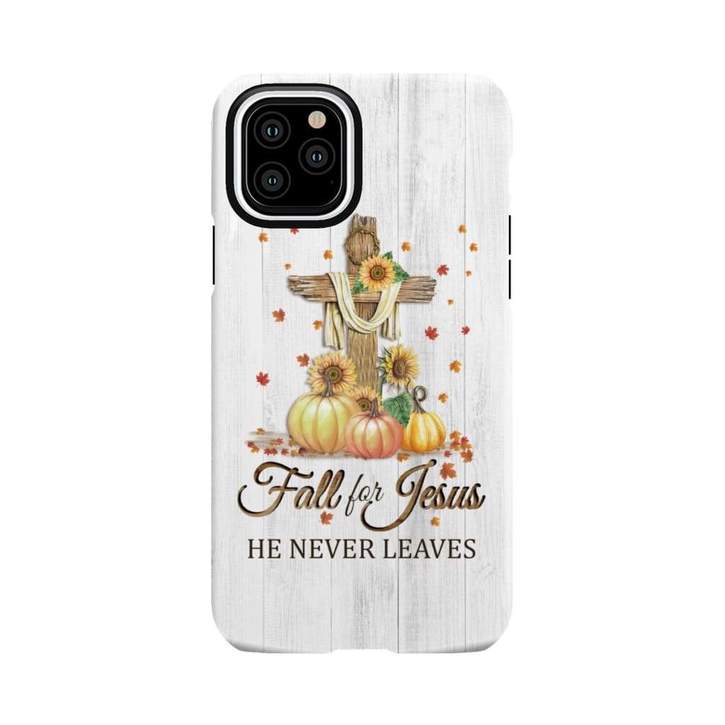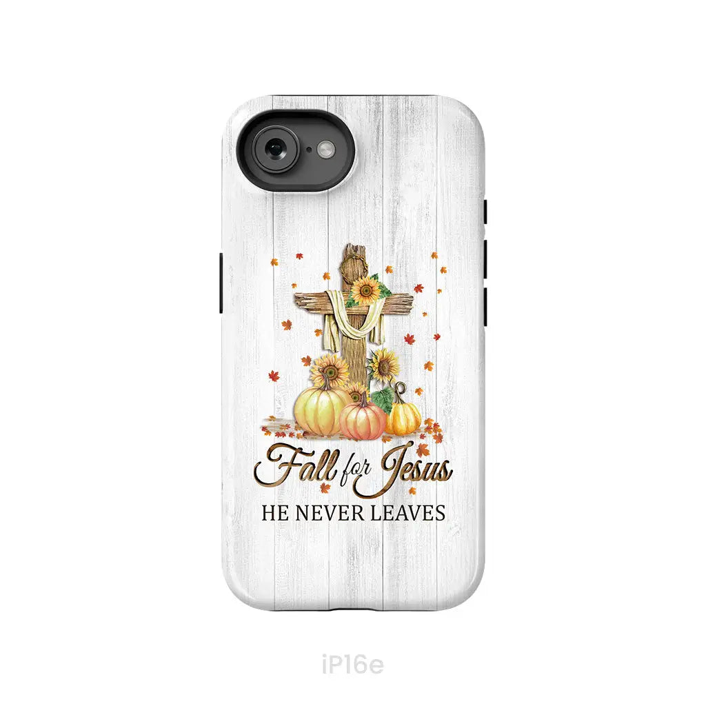 Fall for Jesus he never leaves cross pumpkin Thanksgiving phone case