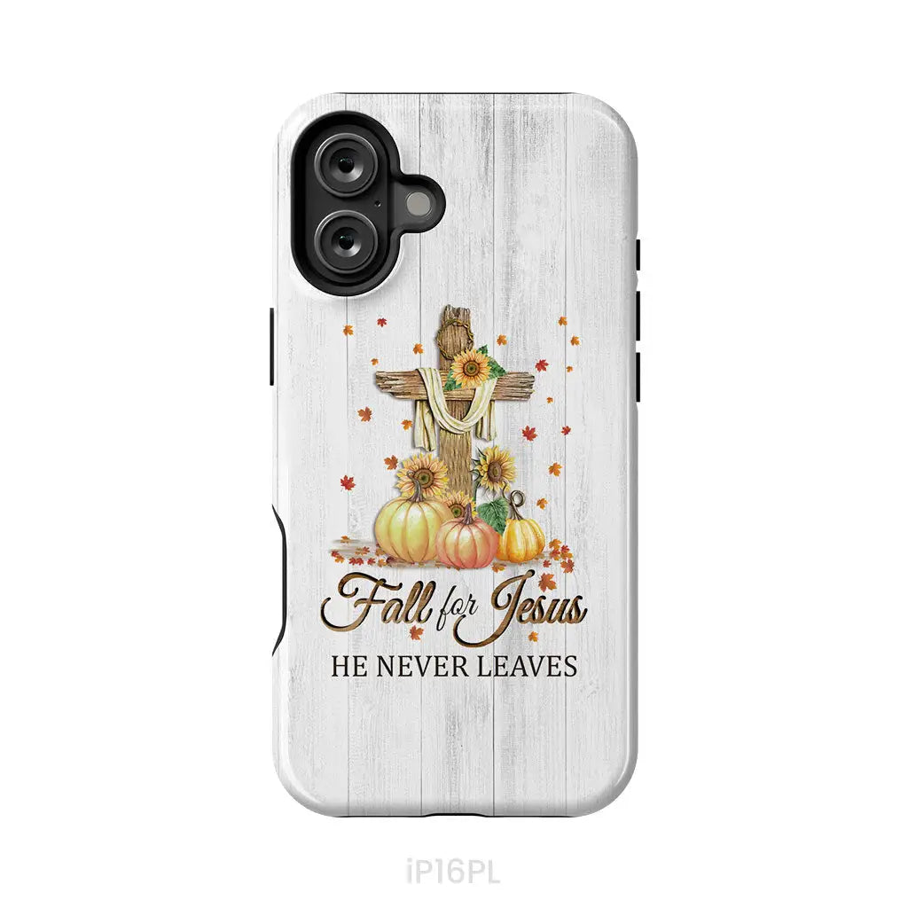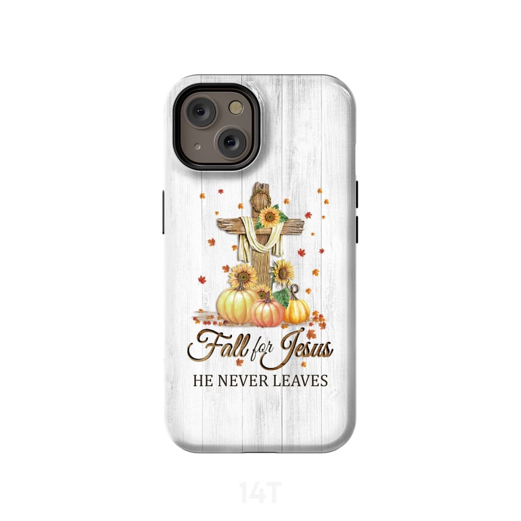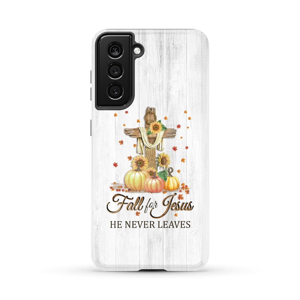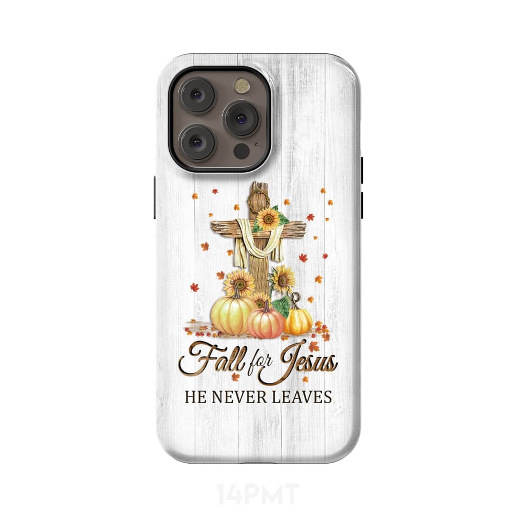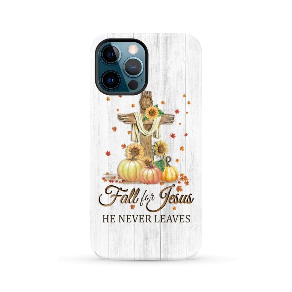 Fall for Jesus he never leaves cross pumpkin Thanksgiving phone case