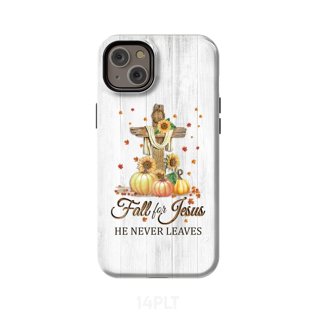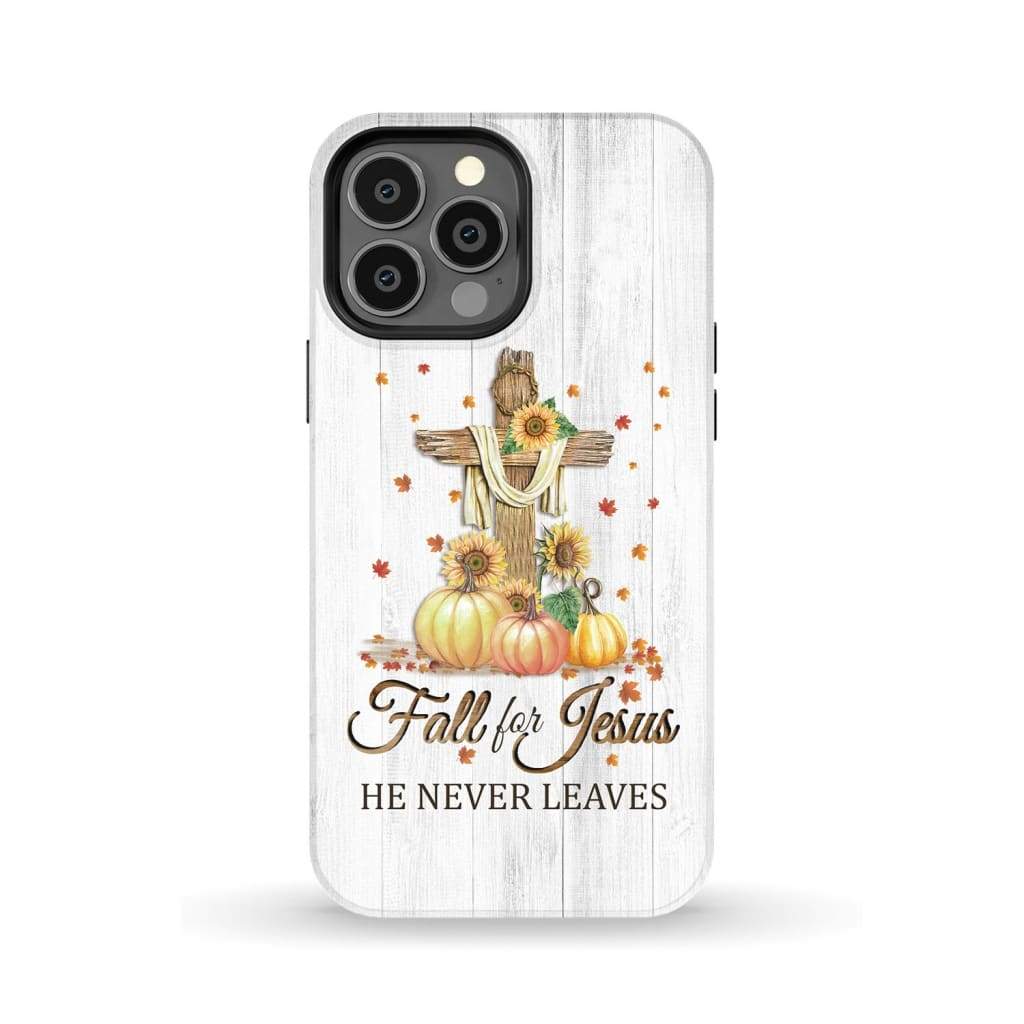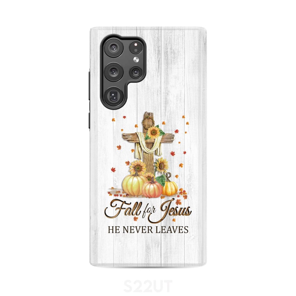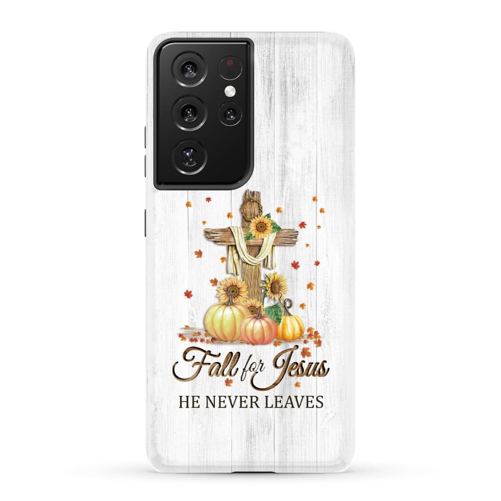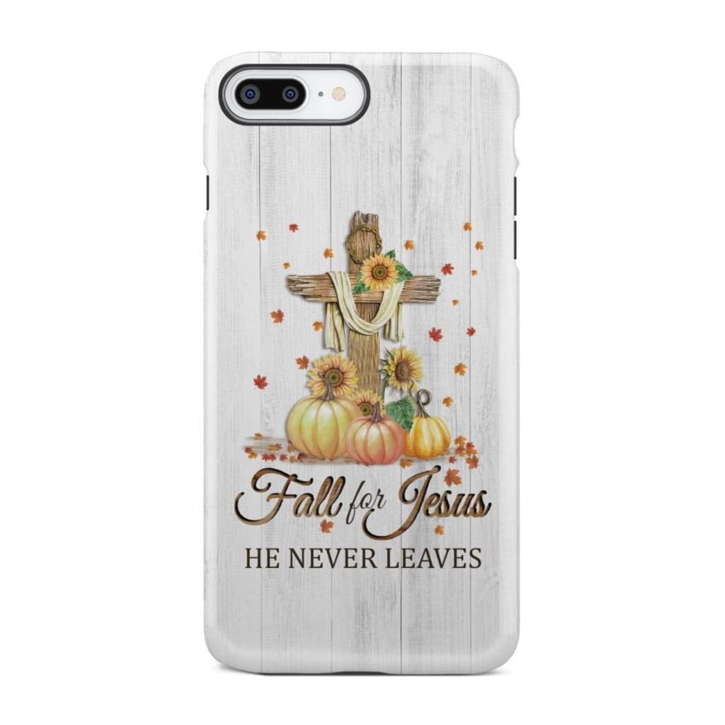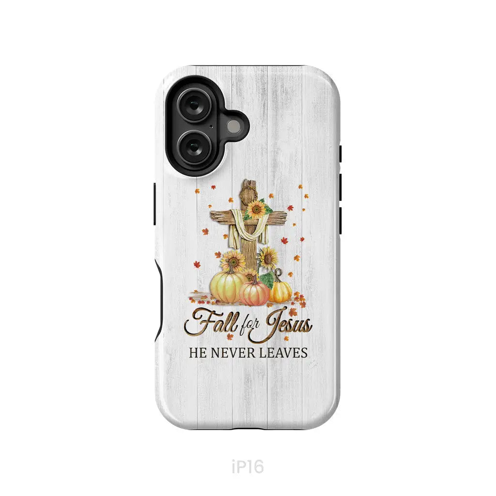 Fall for Jesus he never leaves cross pumpkin Thanksgiving phone case
