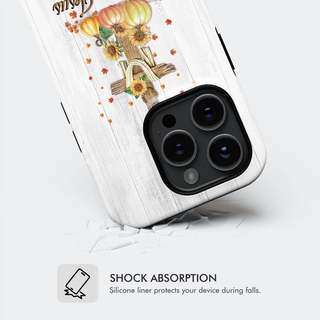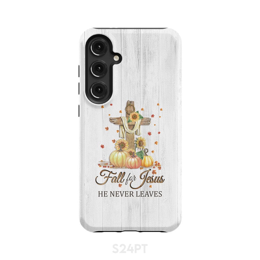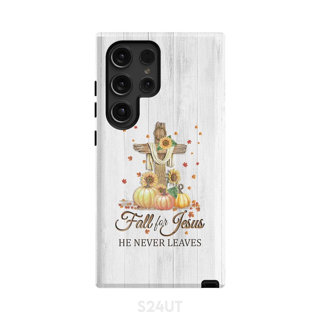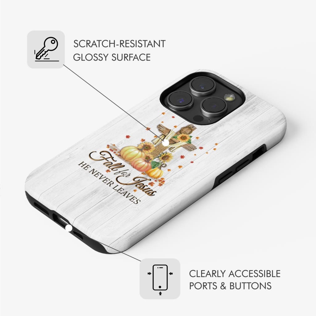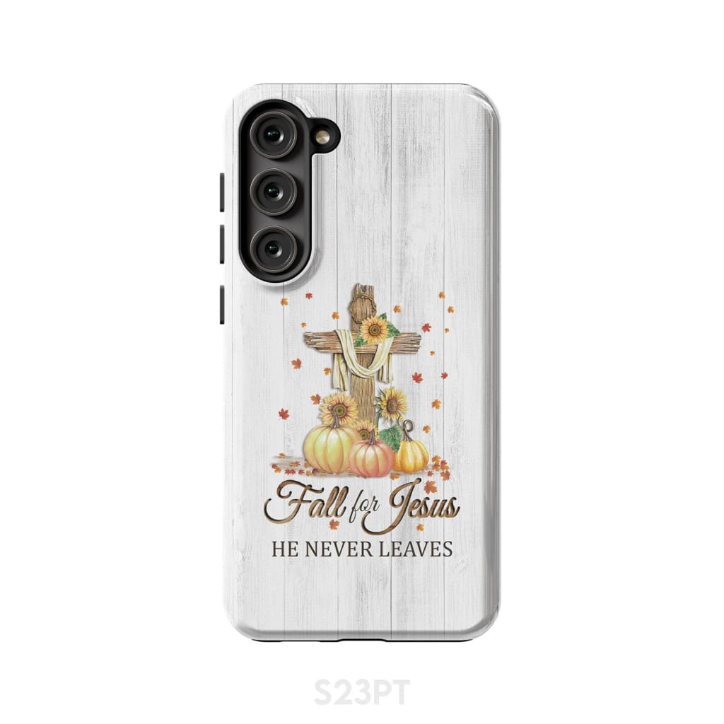Fall for Jesus he never leaves cross pumpkin Thanksgiving phone case