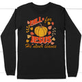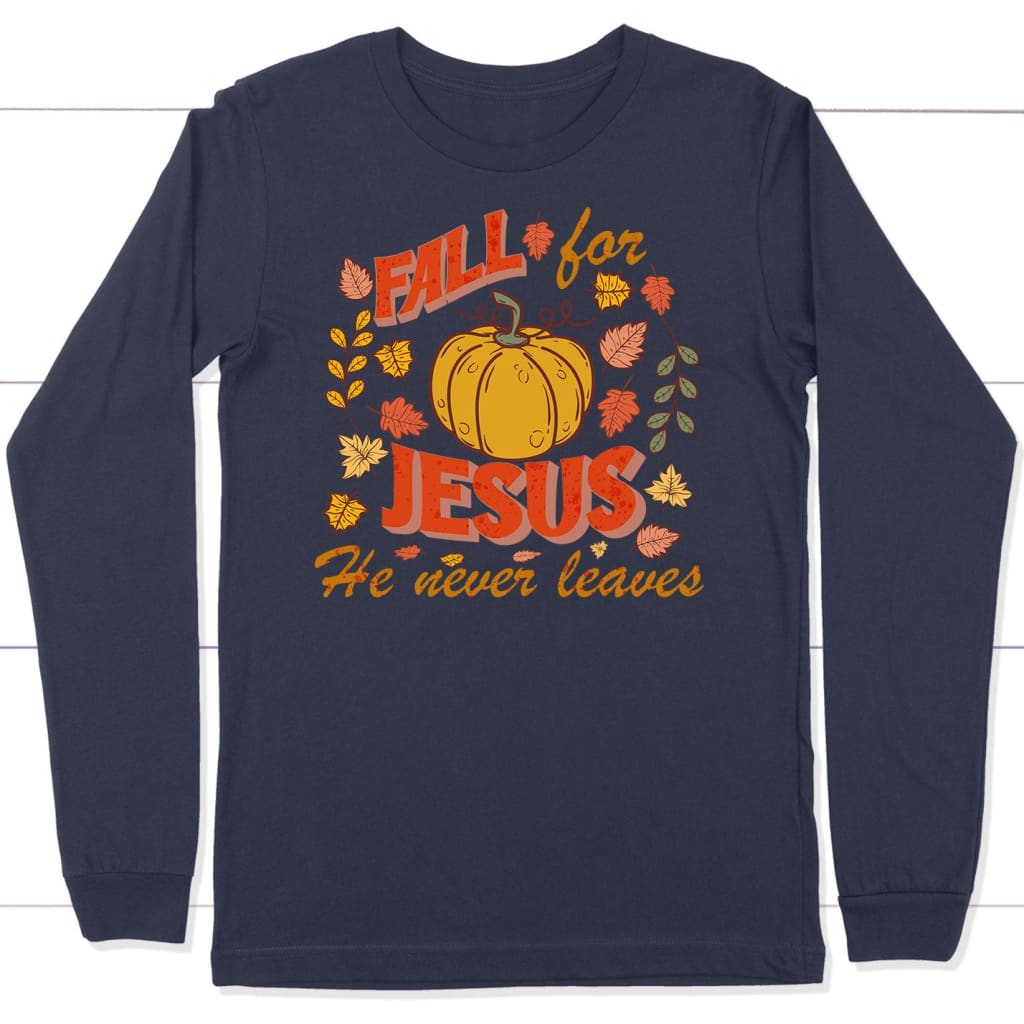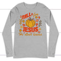 Fall for Jesus He Never Leaves Thanksgiving Long Sleeve Shirt