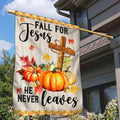 Fall Jesus Cross Flag Fall For Jesus He Never Leaves Thanksgiving Halloween Pumpkins Flag, Christian Flag, Scripture Flag, Garden Banner