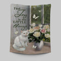 Find Joy In The Little Things White Cat Rose Butterfly Tapestry Art - Bible Verse Wall Art - Christian Inspirational Wall Decor