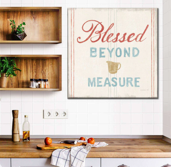 Floursack Kitchen Blessed Beyond Measure Square Canvas Wall Art - Bible Verse Wall Art Canvas - Religious Wall Hanging is made in the United States. We can make a custom canvas for you, just let us know what you need!