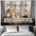 Flower Glass Bottle God Says You Are Large Tapestry - Christian Wall Art - Bible Verse Tapestry Art