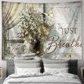 Flower Vase By The Window Vintage Painting Just Breathe Jesus Tapestry, Tapestries for Living Room Bedroom
