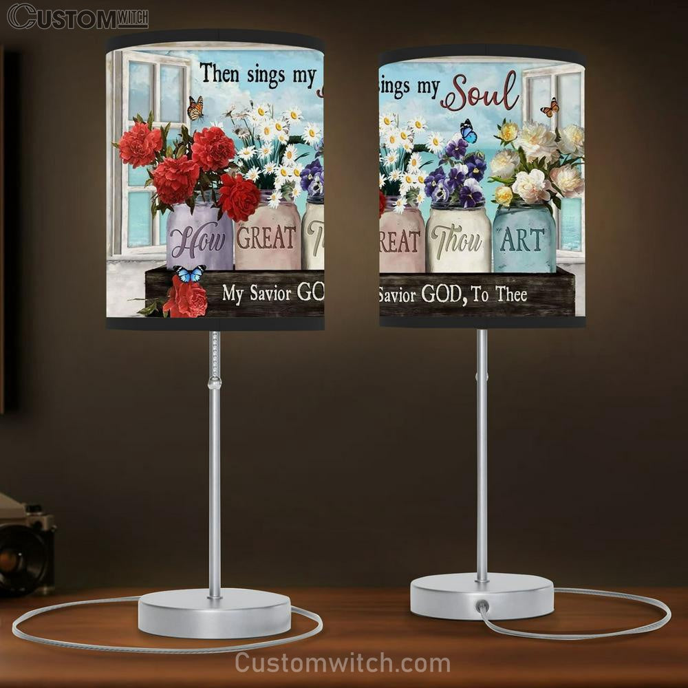 Flowers Window Frame Then Sings My Soul My Savior God To Thee Table Lamp