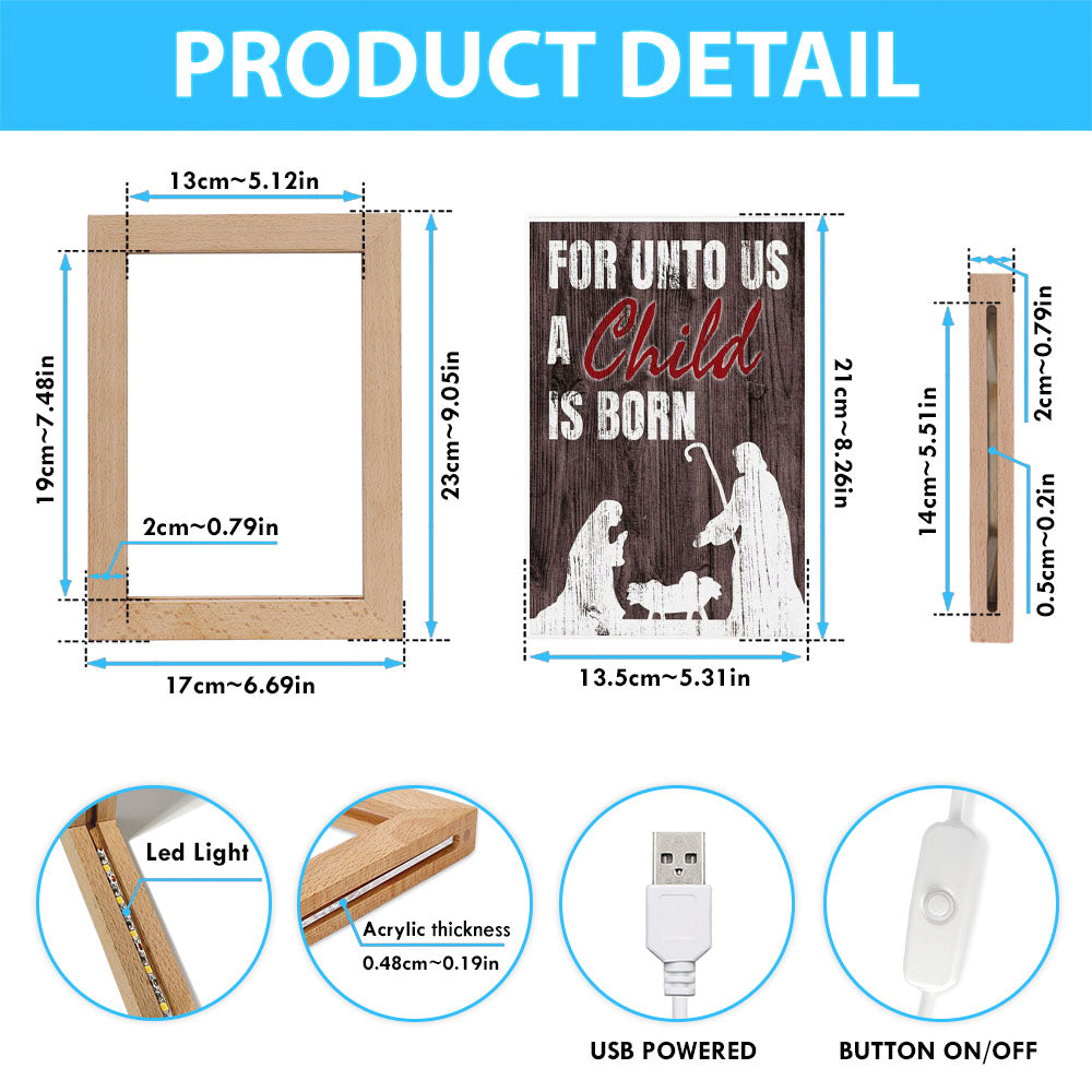 For Unto Us A Child Is Born Christian Christmas Frame Lamp Prints - Bible Verse Decor - Scripture Art