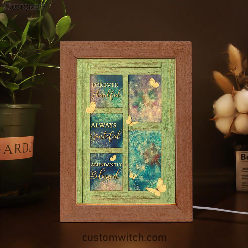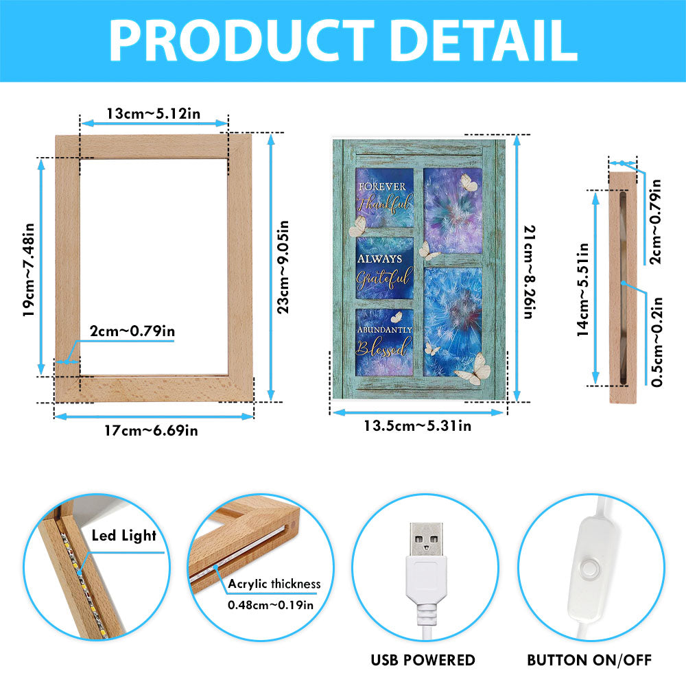 Forever Thankful Always Grateful Dandelion White Butterfly Frame Lamp Art - Bible Verse Art - Christian Inspirational Decor