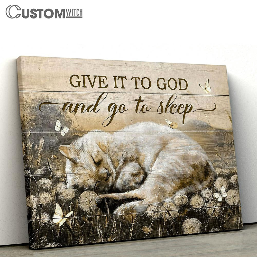 Give It To God And Go To Sleep Dandelion Field Sleeping Cat Butterfly Canvas Wall Art - Bible Verse Canvas - Religious Prints
